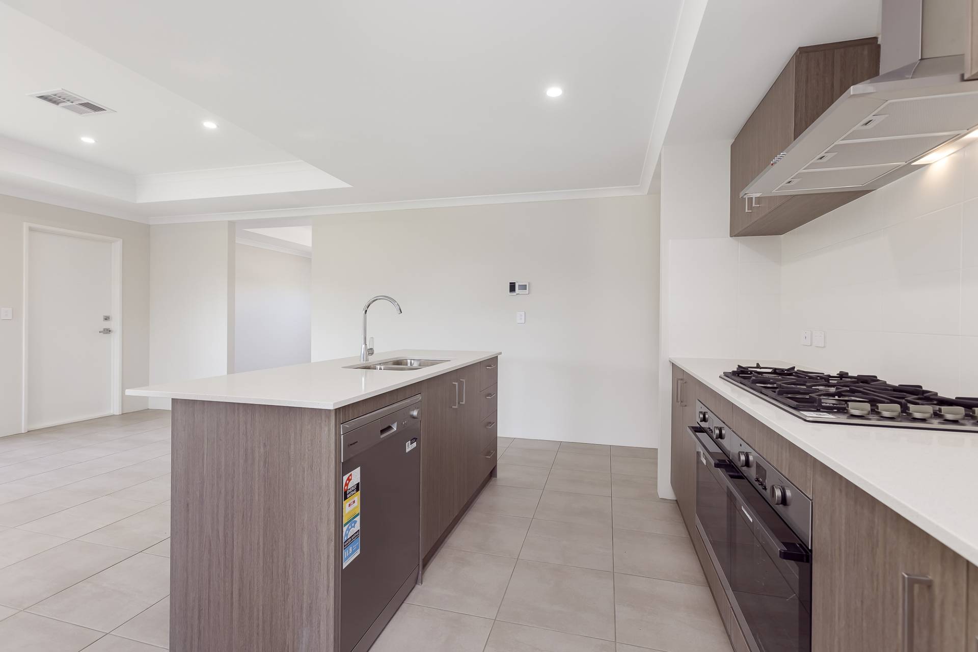 Stylish kitchen with a large gas cooktop, oven and dishwasher