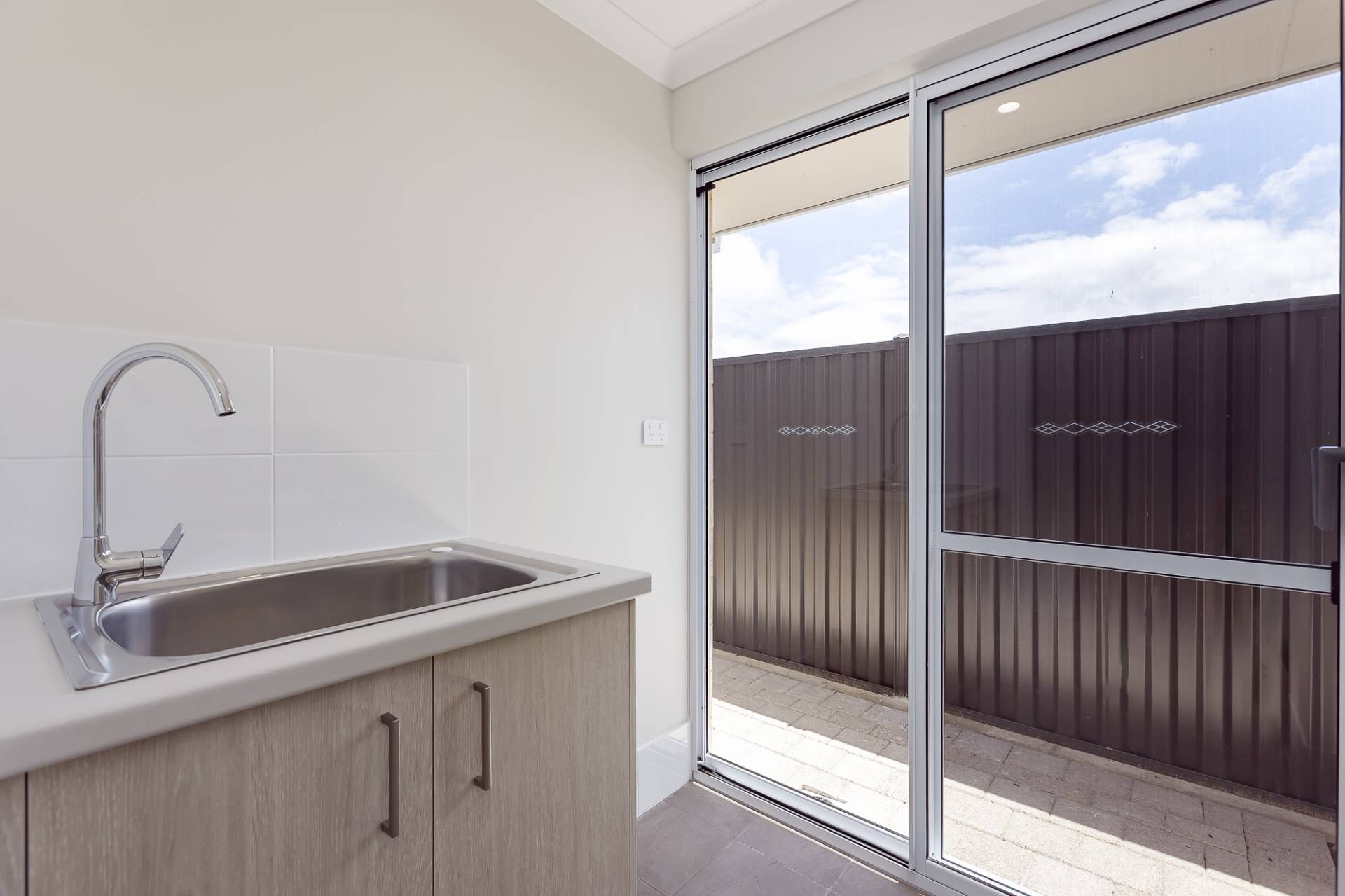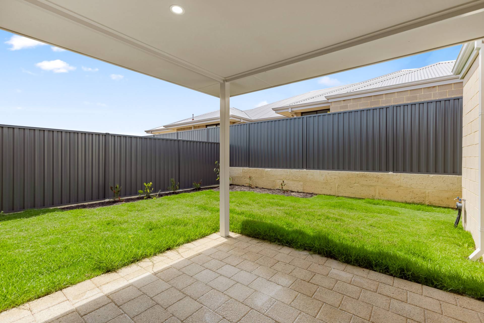 Low maintenance backyard with reticulated lawns