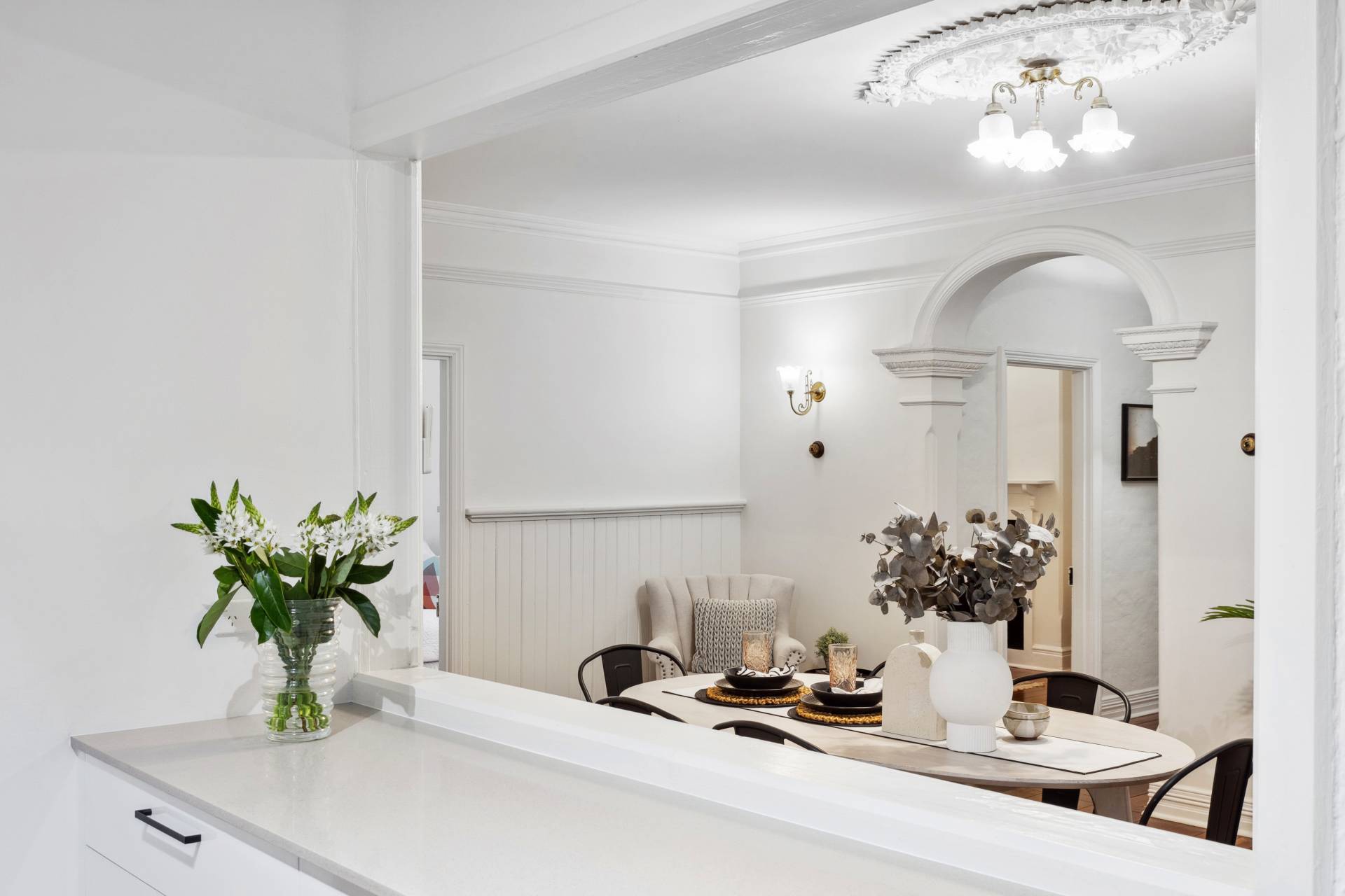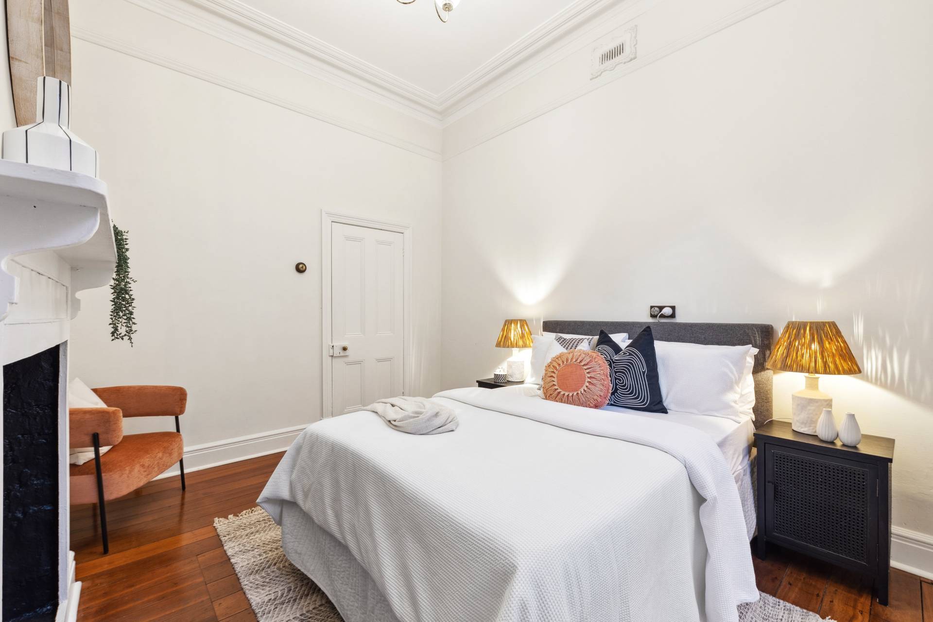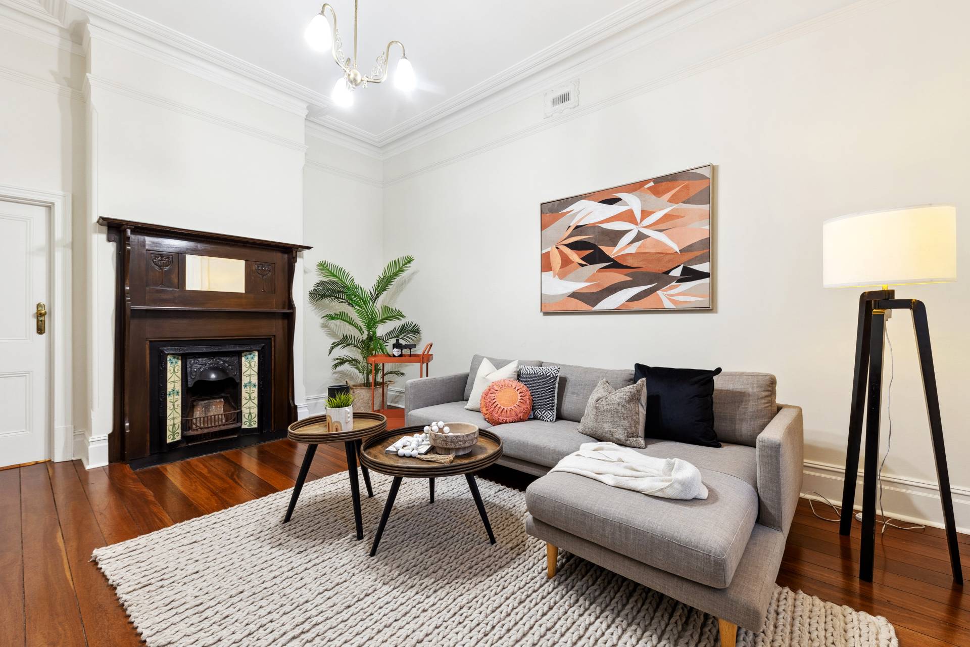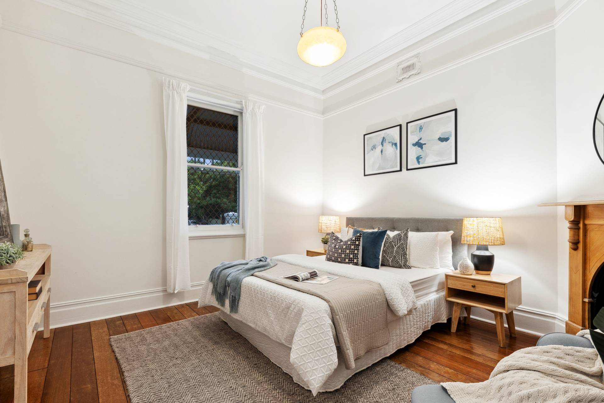 Original jarrah floorboards sweep throughout the home, offering a rich, natural warmth underfoot that complements the home's historic style. The craftsmanship of the era is evident in every detail, from the stunning ceiling roses to the beautifully preserved cornices that crown each room. The four spacious bedrooms are carefully designed as serene retreats. Each bedroom features beautiful high ornate ceilings, while two of the bedrooms boast their own fireplaces, adding a touch of nostalgic charm to each space. The recently updated bathroom is situated towards the back of the home offering a luxurious retreat, with quality fixtures and fittings.