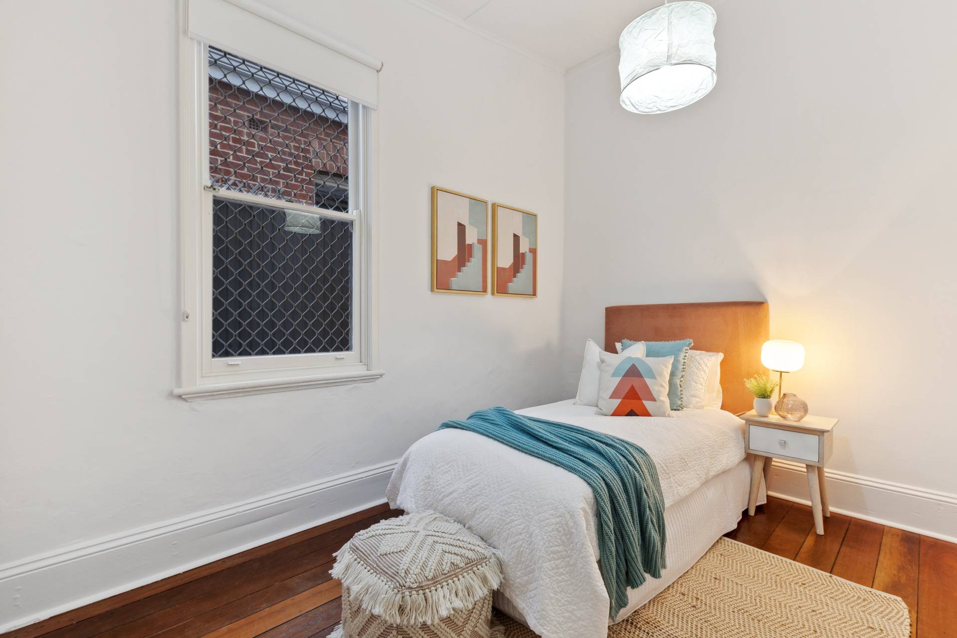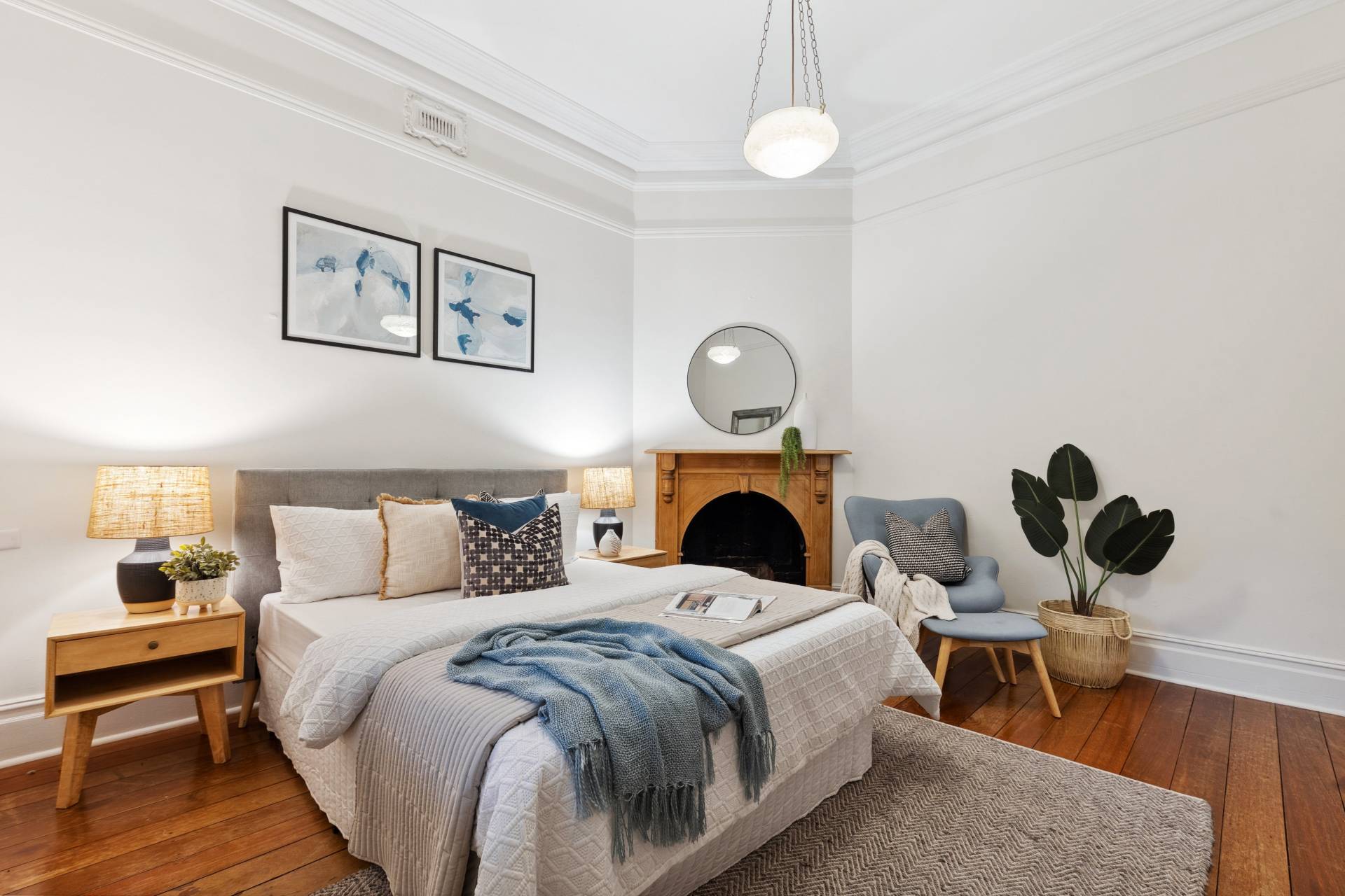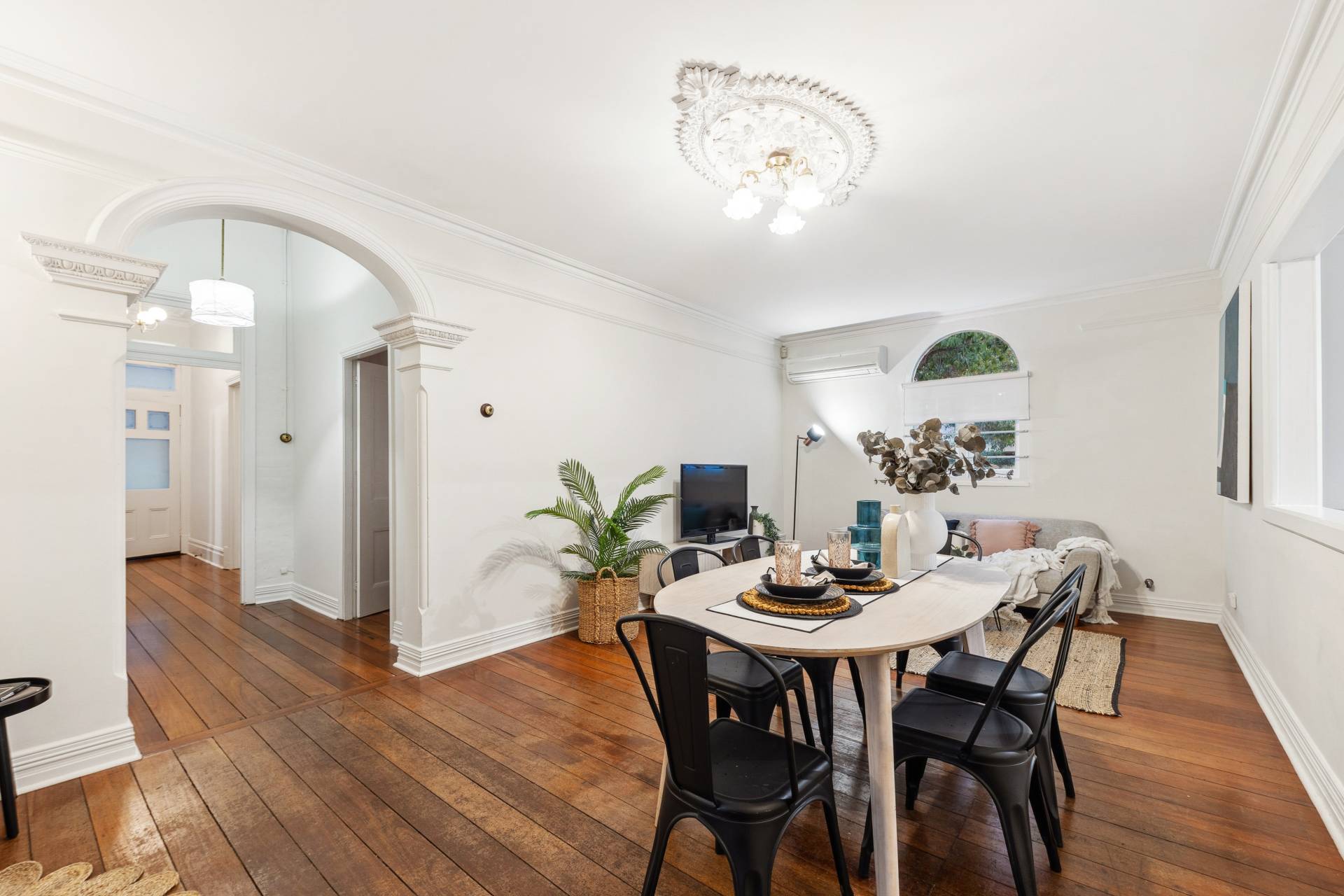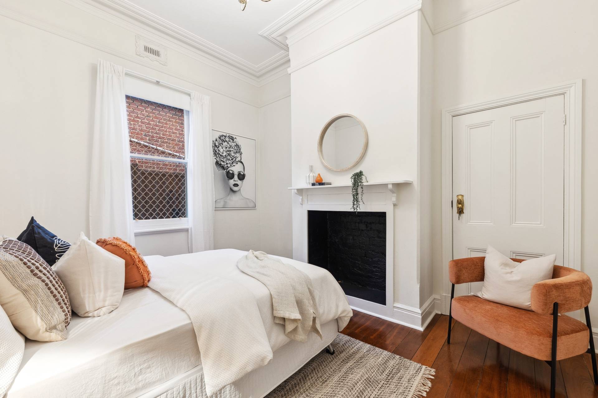 Original jarrah floorboards sweep throughout the home, offering a rich, natural warmth underfoot that complements the home's historic style. The craftsmanship of the era is evident in every detail, from the stunning ceiling roses to the beautifully preserved cornices that crown each room. The four spacious bedrooms are carefully designed as serene retreats. Each bedroom features beautiful high ornate ceilings, while two of the bedrooms boast their own fireplaces, adding a touch of nostalgic charm to each space. The recently updated bathroom is situated towards the back of the home offering a luxurious retreat, with quality fixtures and fittings.