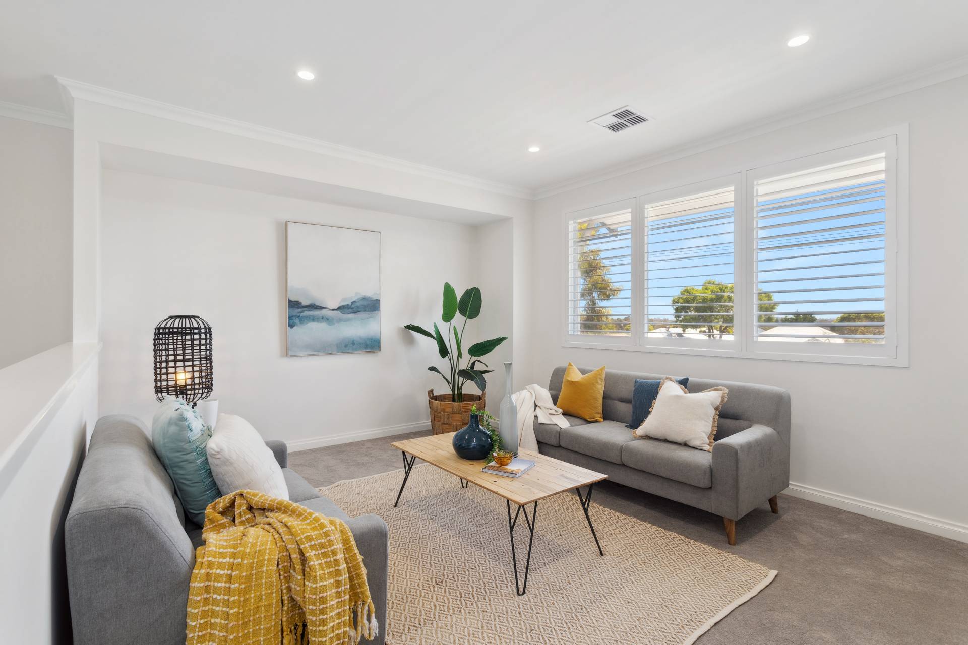 As you enter, you are greeted by an inviting functional floor plan that seamlessly integrates the living, dining, and kitchen areas, creating a perfect space for entertaining or relaxing with loved ones. The kitchen boasts sleek, modern cabinetry, high-end stainless-steel appliances, and a large center island bench with waterfall ends, making it a chef's delight and the hub of the home.