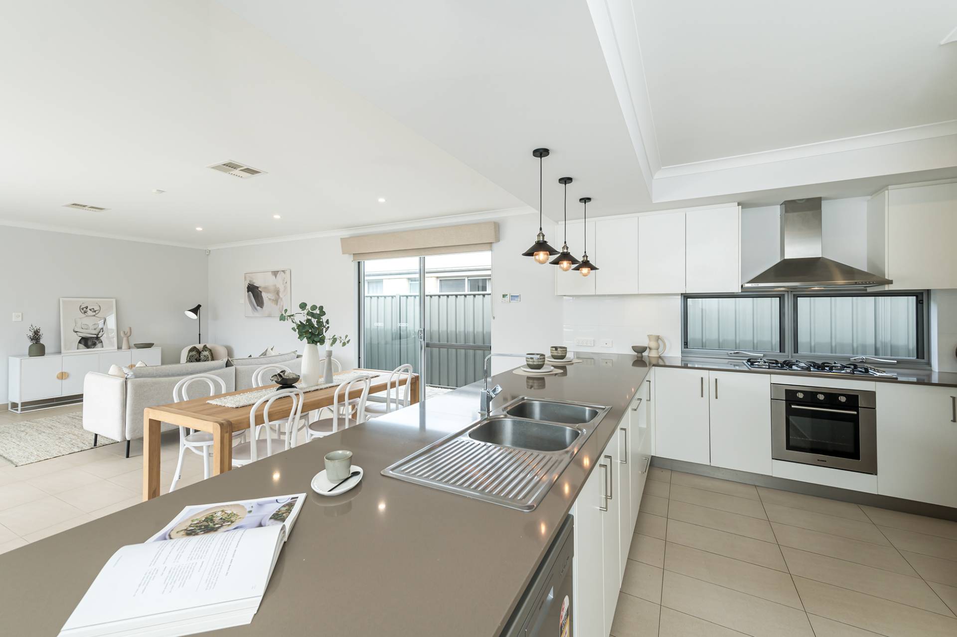 Thoughtfully designed kitchen with statement pendant lights and plenty of benchtop space