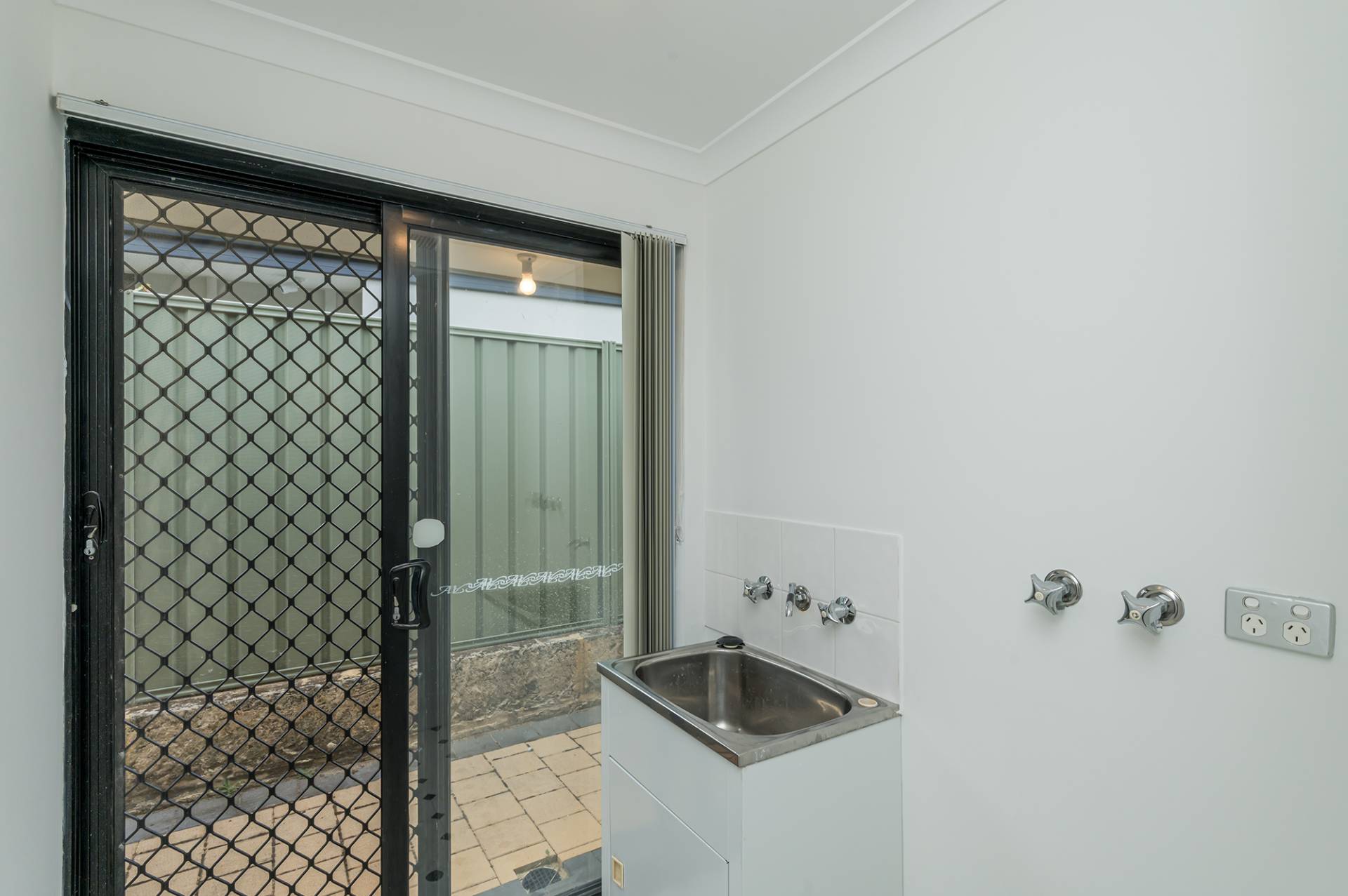 The master bedroom boasts a walk-in robe and ensuite, making this a peaceful sanctuary. The additional two bedrooms are bright and good-sized featuring large windows that let in lots of natural light. The separate laundry space with convenient access to the garden adds to the home's functional layout.