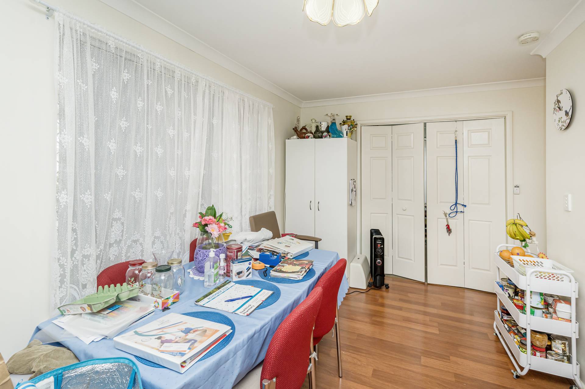 Nestled on a quiet street graced by a mature Jacaranda tree and lush gardens, this home features a light-filled open-plan living, kitchen and family meals area, effortlessly creating a cohesive and functional living space, with a modern kitchen offering ample cupboard space and pantry, built-in oven, and gas stovetop. From the casual dining area and tucked away hidden behind bi-fold doors lies the separate study/activity room, providing the home office worker or hobby enthusiast/artist their dedicated private space away from the rest of the home.