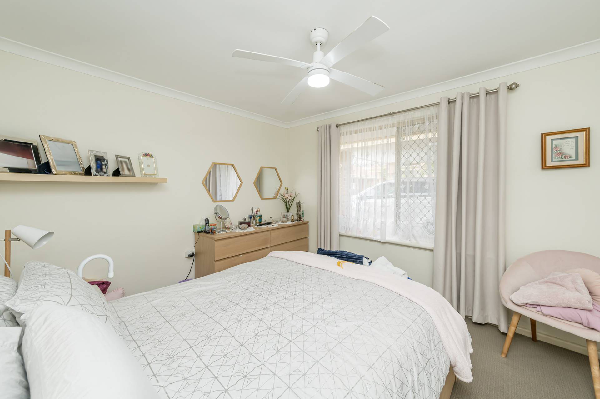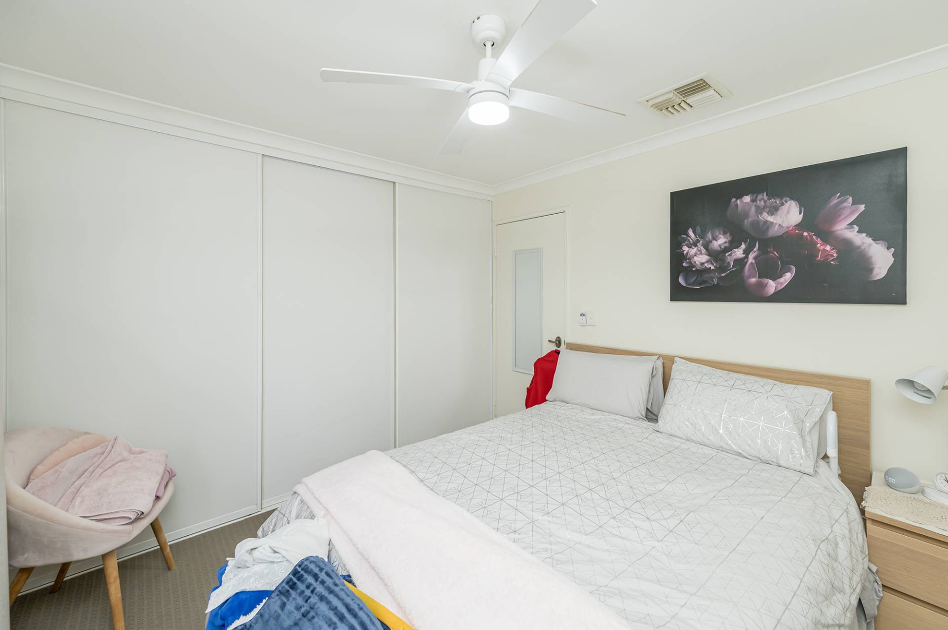The ducted air conditioning provides comfort all year round, with both bedrooms featuring carpet with ceiling fans, the main bedroom with the added convenience of sliding built-in robes with a light and bright bathroom with glass shower screen accommodating both rooms.