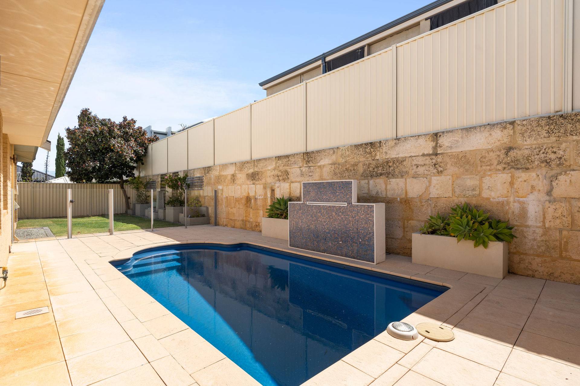 The magic continues outdoors, where a beautifully-landscaped backyard awaits. Relax under the stylish alfresco area off the main living space, enjoy the peaceful ambience created by a lovely backyard-lawn setting or dive into the sparkling below-ground swimming pool — a private summer oasis that is ideal for entertaining or unwinding.