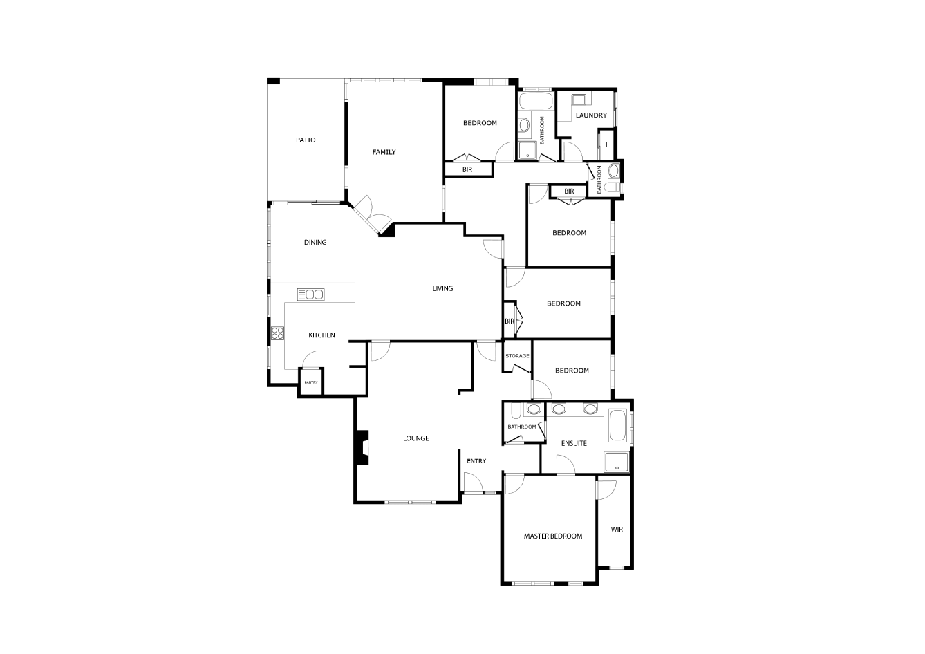 The generous second, third and fourth bedrooms all have built-in double robes and are serviced by a light-filled main family bathroom (with a shower and separate bathtub), a powder room and a delightful laundry with full-height double-sliding-door linen storage, under-bench cupboards and external/side access for drying.