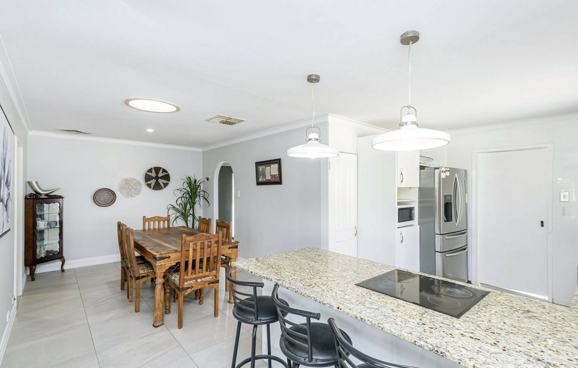 • Spacious and Light-Filled: Enjoy tiled, open-plan kitchen and dining areas that flow seamlessly into a large living room, creating a welcoming and spacious environment.