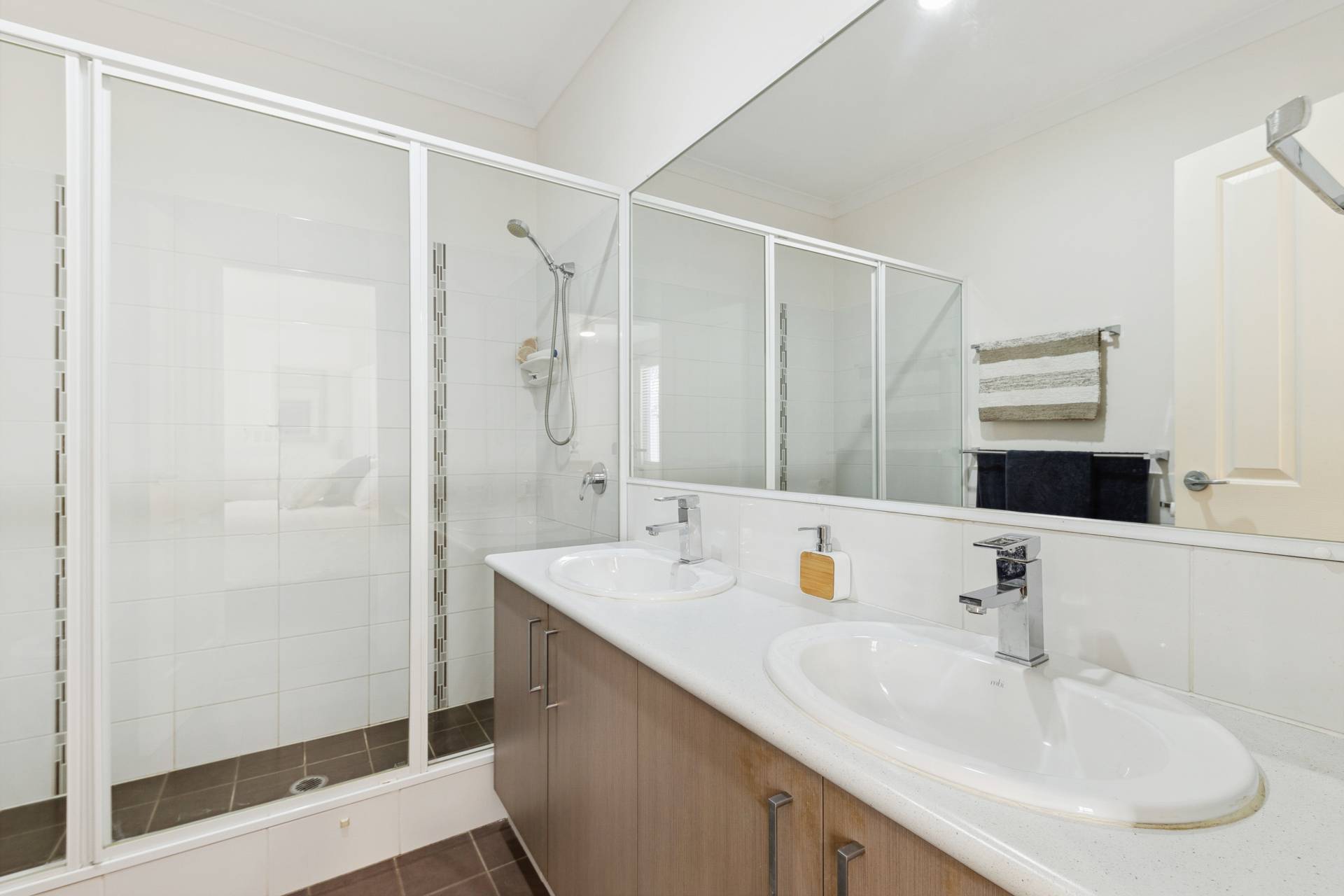 The home boasts three generously sized bedrooms, with nice carpets and natural light all designed with comfort in mind. The master bedroom offers ample storage and a sense of privacy, boasting a walk-in robe and ensuite with his and hers vanities.