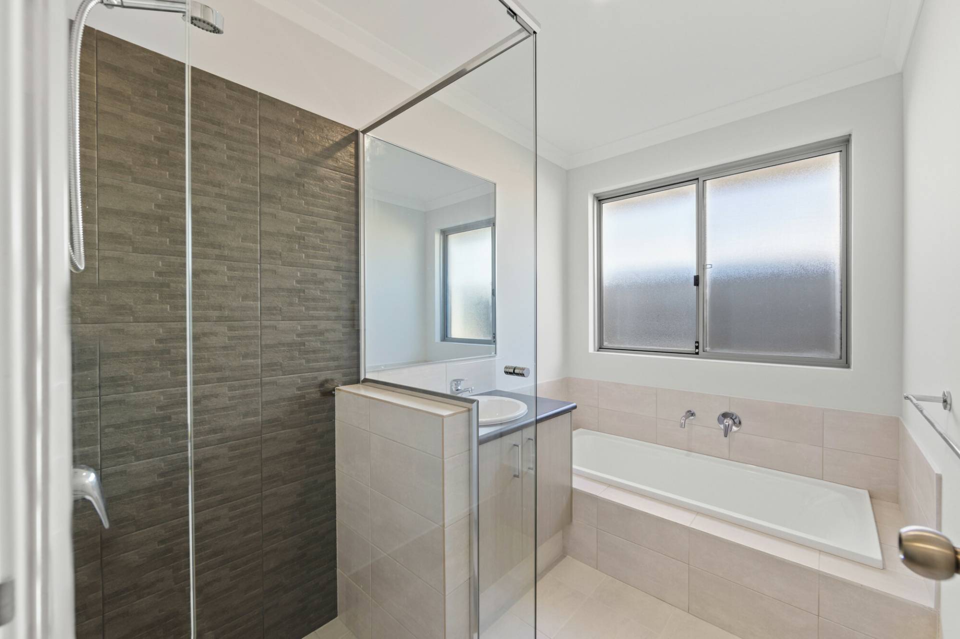 Main bathroom has separate shower and bath perfect for families