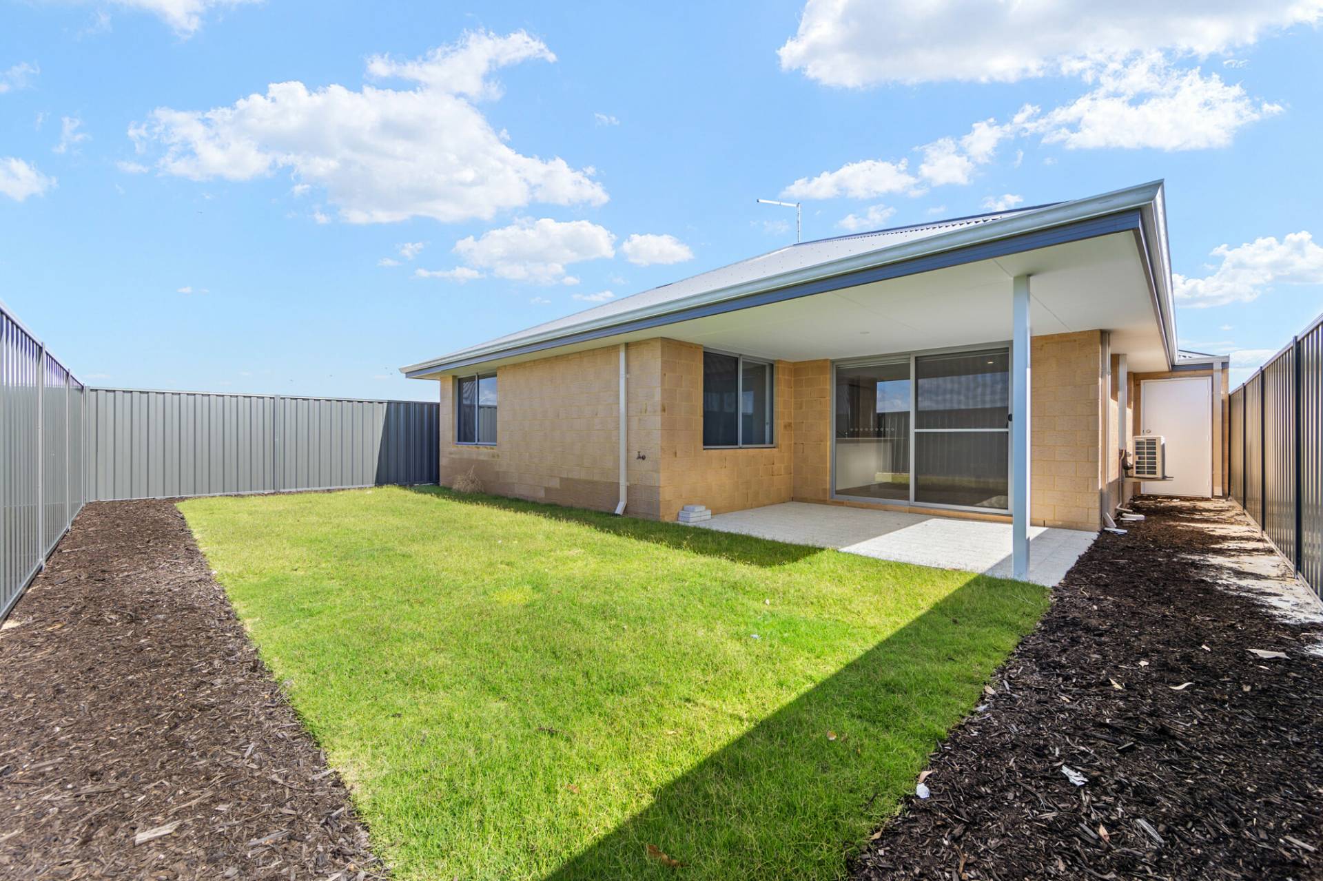 Low maintenance backyard with easy-care garden beds and real turf