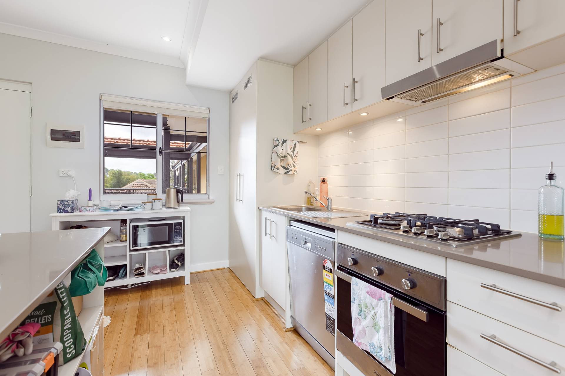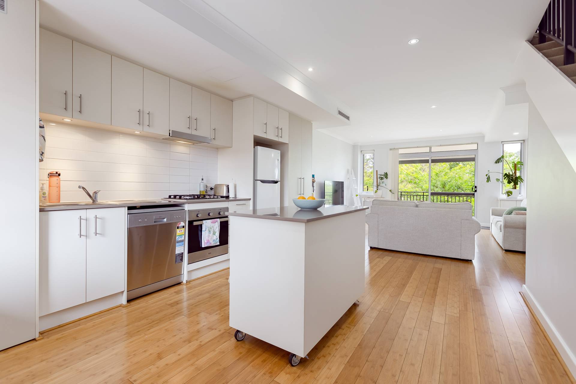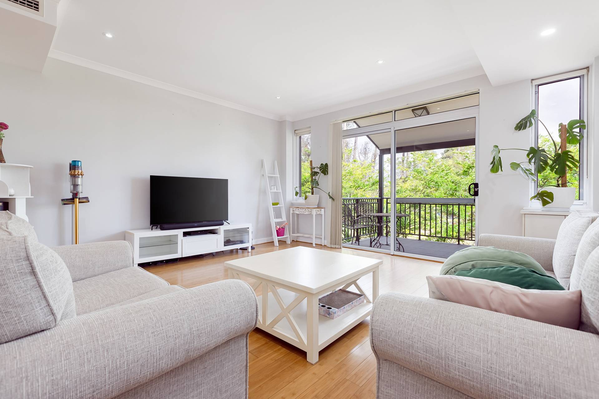 A well-appointed kitchen boasts overhead cupboards, chef's oven, separate island bench, pantry and stainless-steel appliances while the living room offers an airy, tranquil space, looking out over the treetops. From the living room, extend your living spaces and slide open your siding doors onto your very own private balcony with leafy-green views and parklands below. What better way to start your day than with a cup of coffee perched right here, or a sundowner early evening, and a quiet alfresco meal during the warmer months?