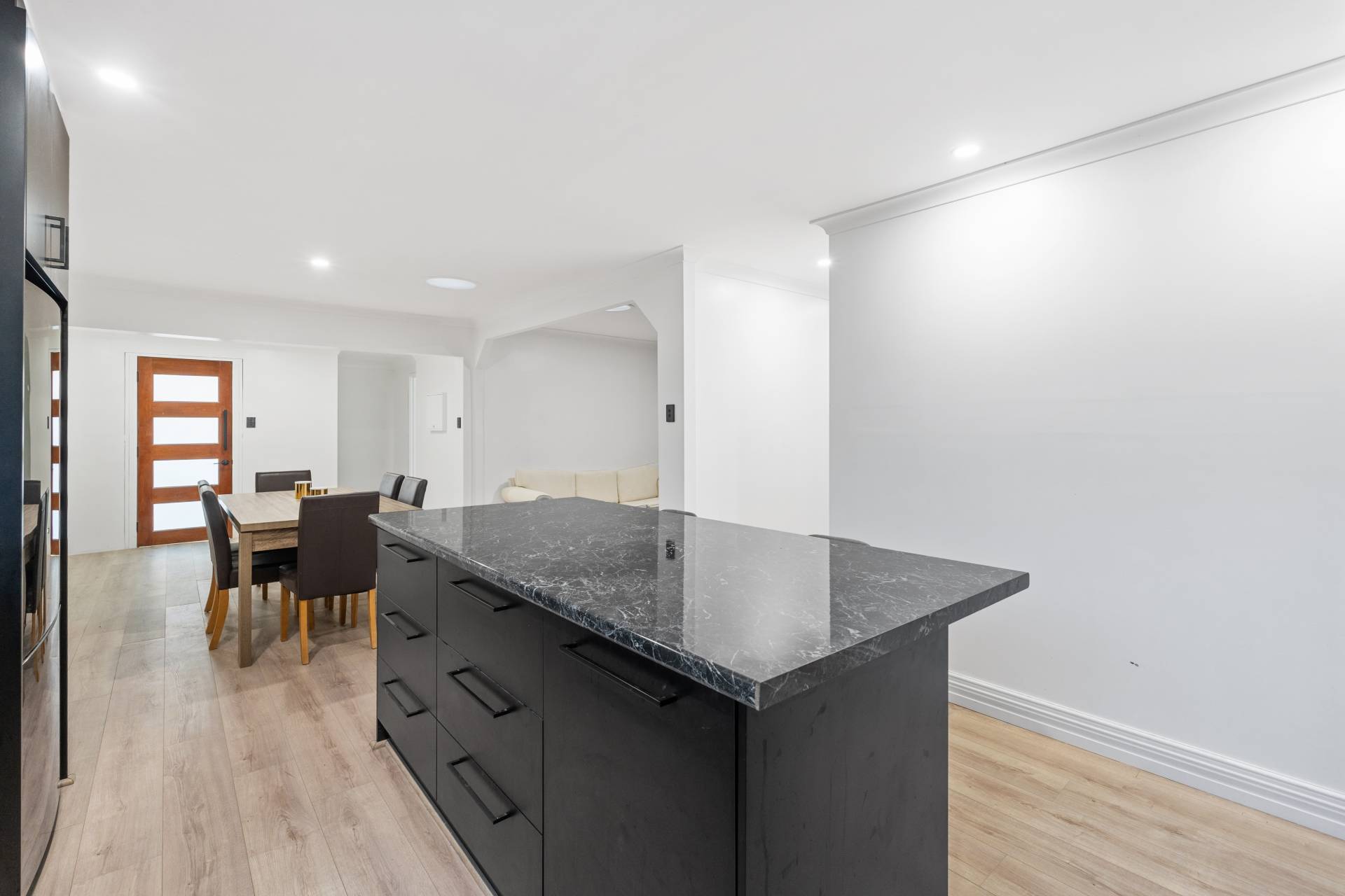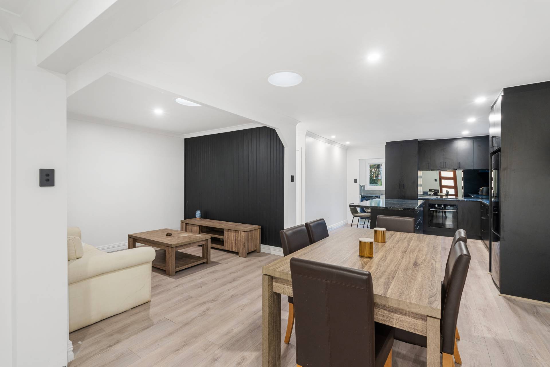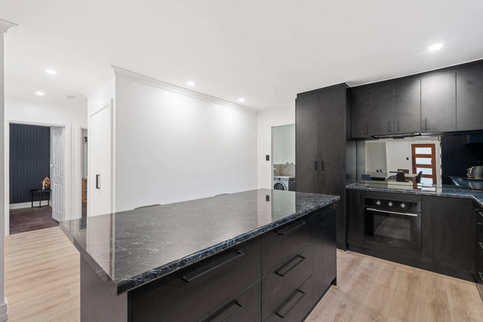 Set on a spacious block with an impressive street presence, you’re greeted by an expansive front garden shaded by mature trees. Step inside and feel right at home with the light-filled open-plan living space, boasting fresh new flooring and a seamless flow into the stunning designer kitchen. Featuring sleek black glass appliances, an island bench with seating, overhead cabinetry, a dishwasher, and a built-in pantry – this kitchen truly is the heart of the home.