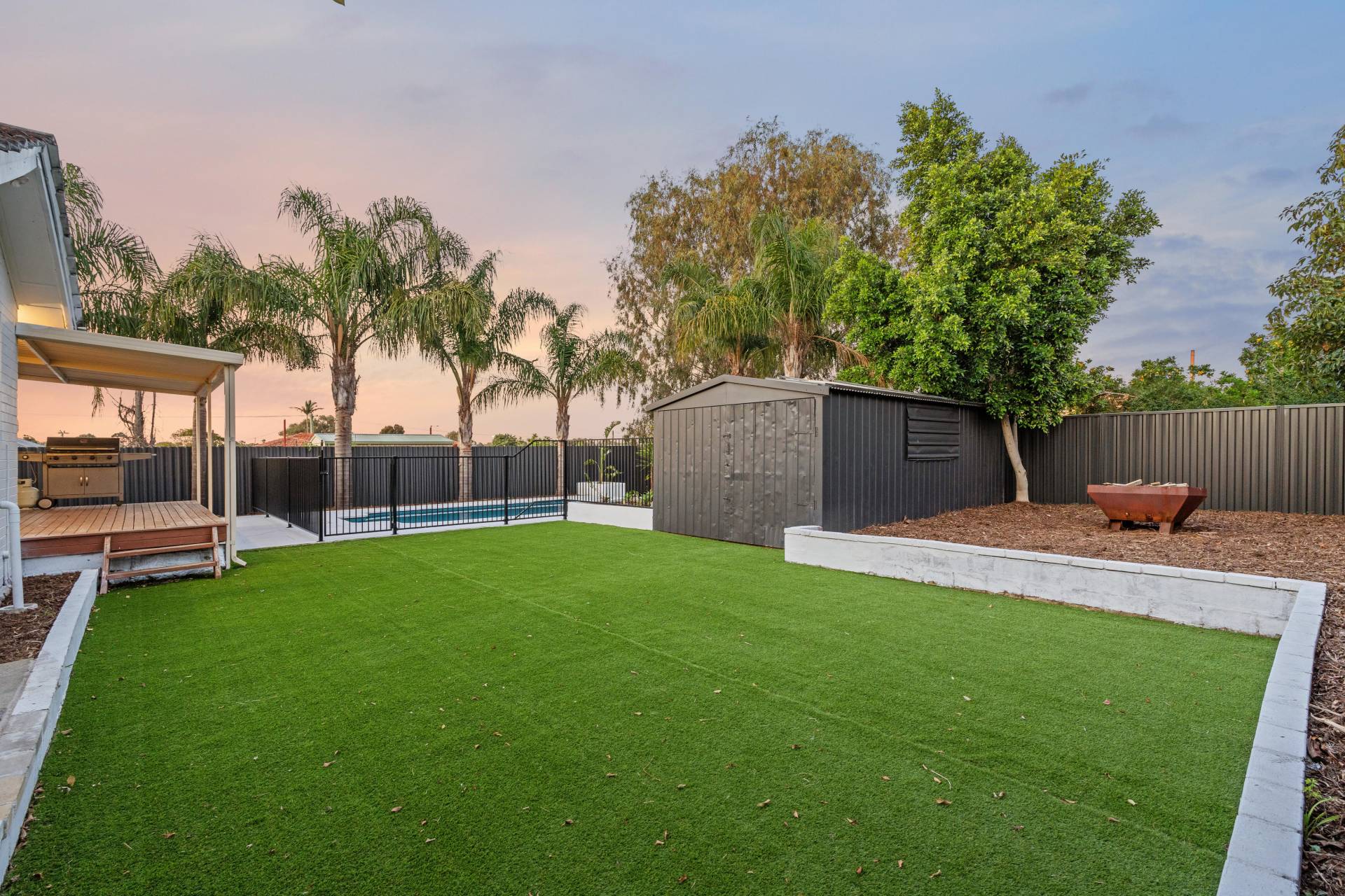 Outdoor living steals the show with a large decked alfresco perfect for hosting friends and family. Overlooking a sparkling below-ground pool surrounded by lush garden beds and swaying palms, this outdoor oasis is the ultimate spot to relax and unwind. The low-maintenance artificial turf and practical garden shed make life even easier.