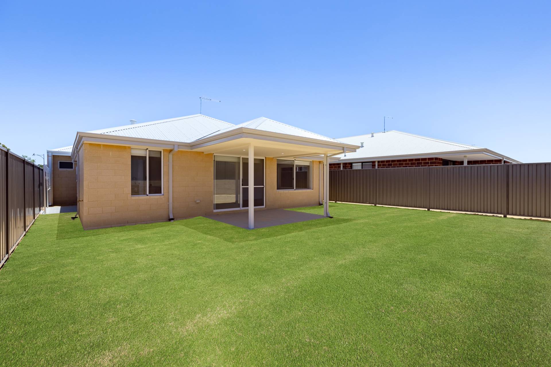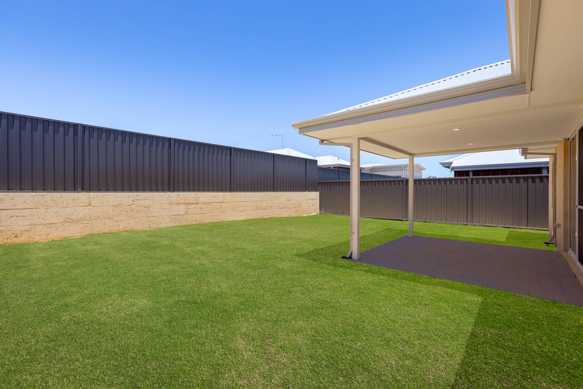 • Low maintenance backyard with easy-care garden beds and real turf