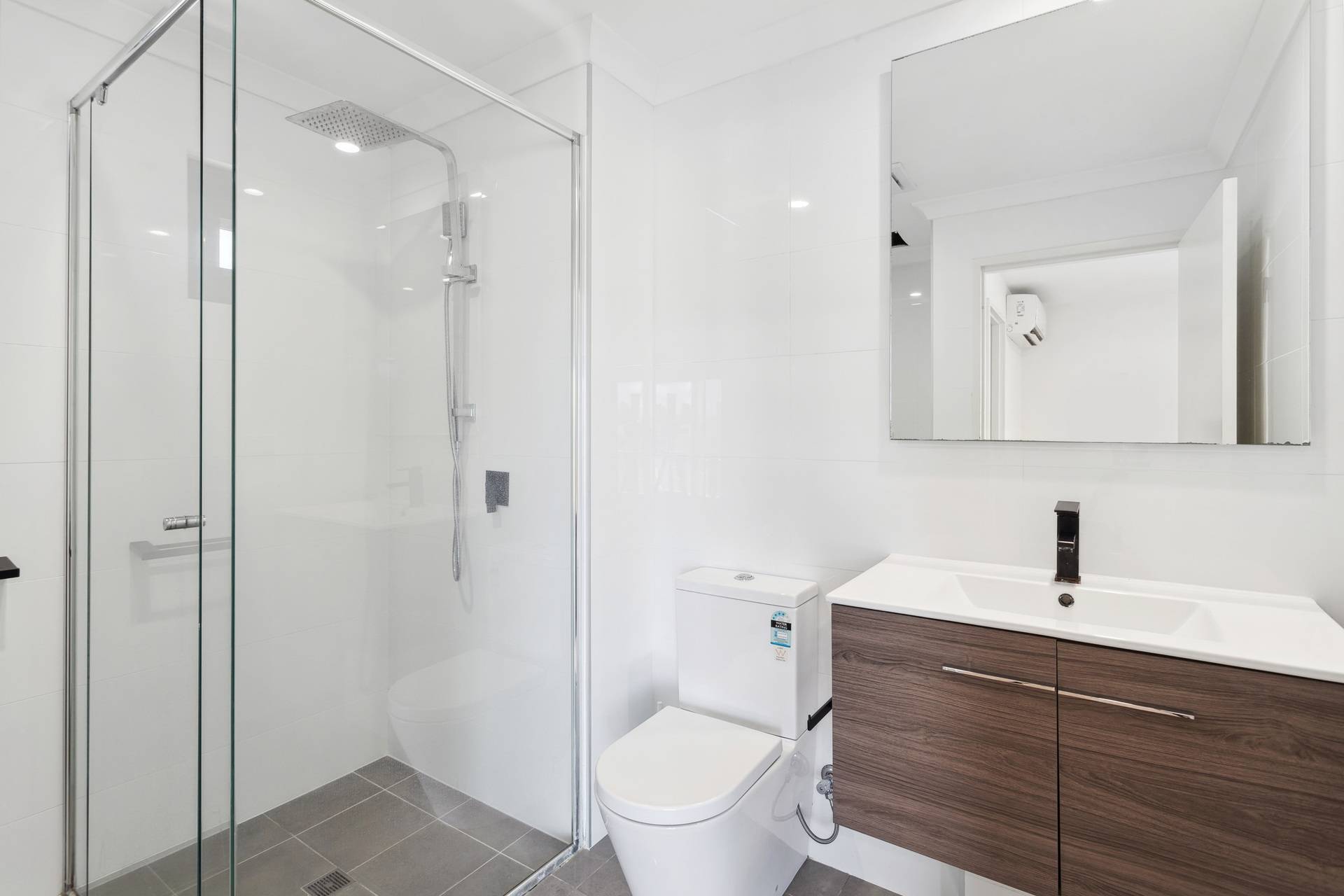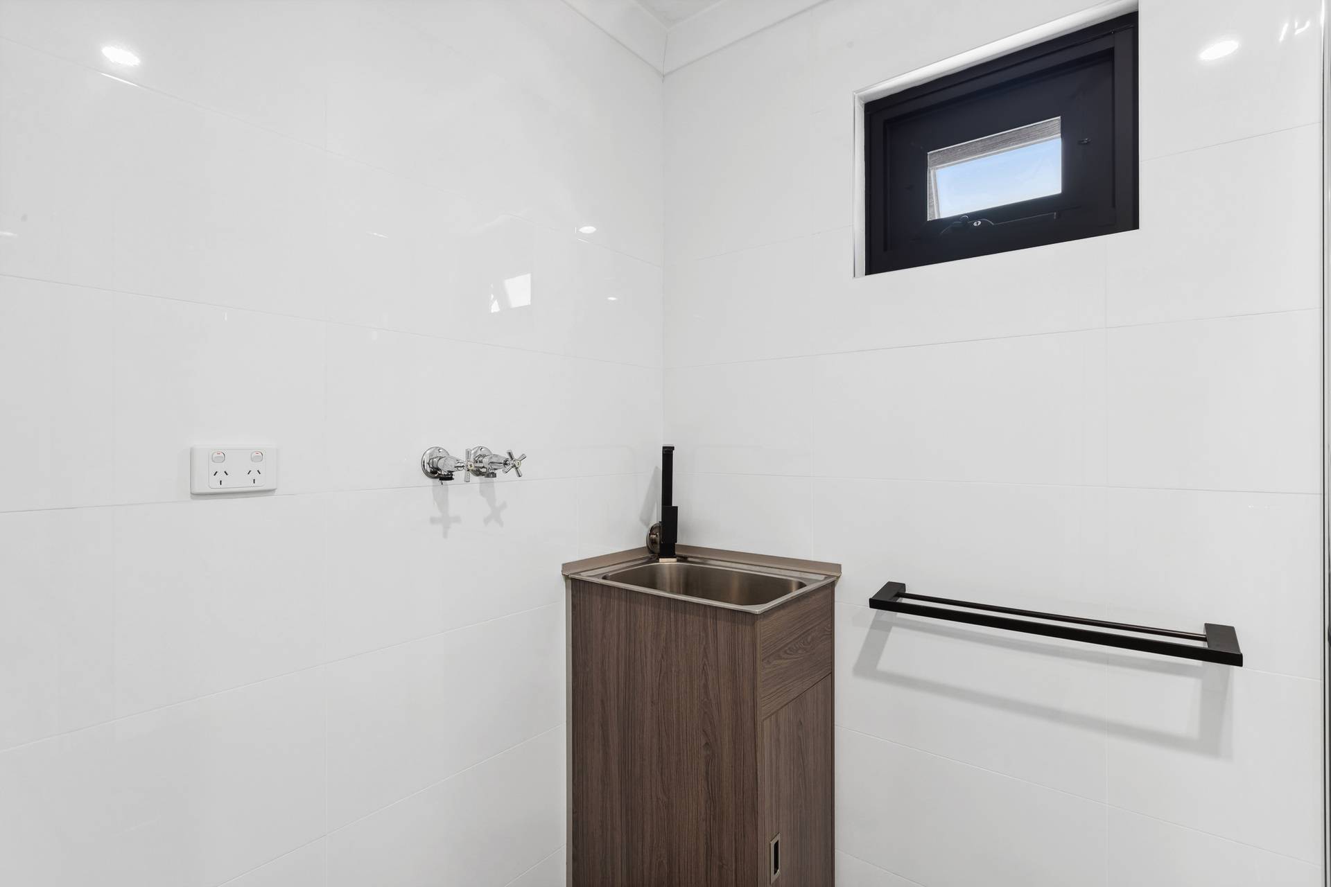 - Sleek Bathroom: Modern bathroom with combined laundry.