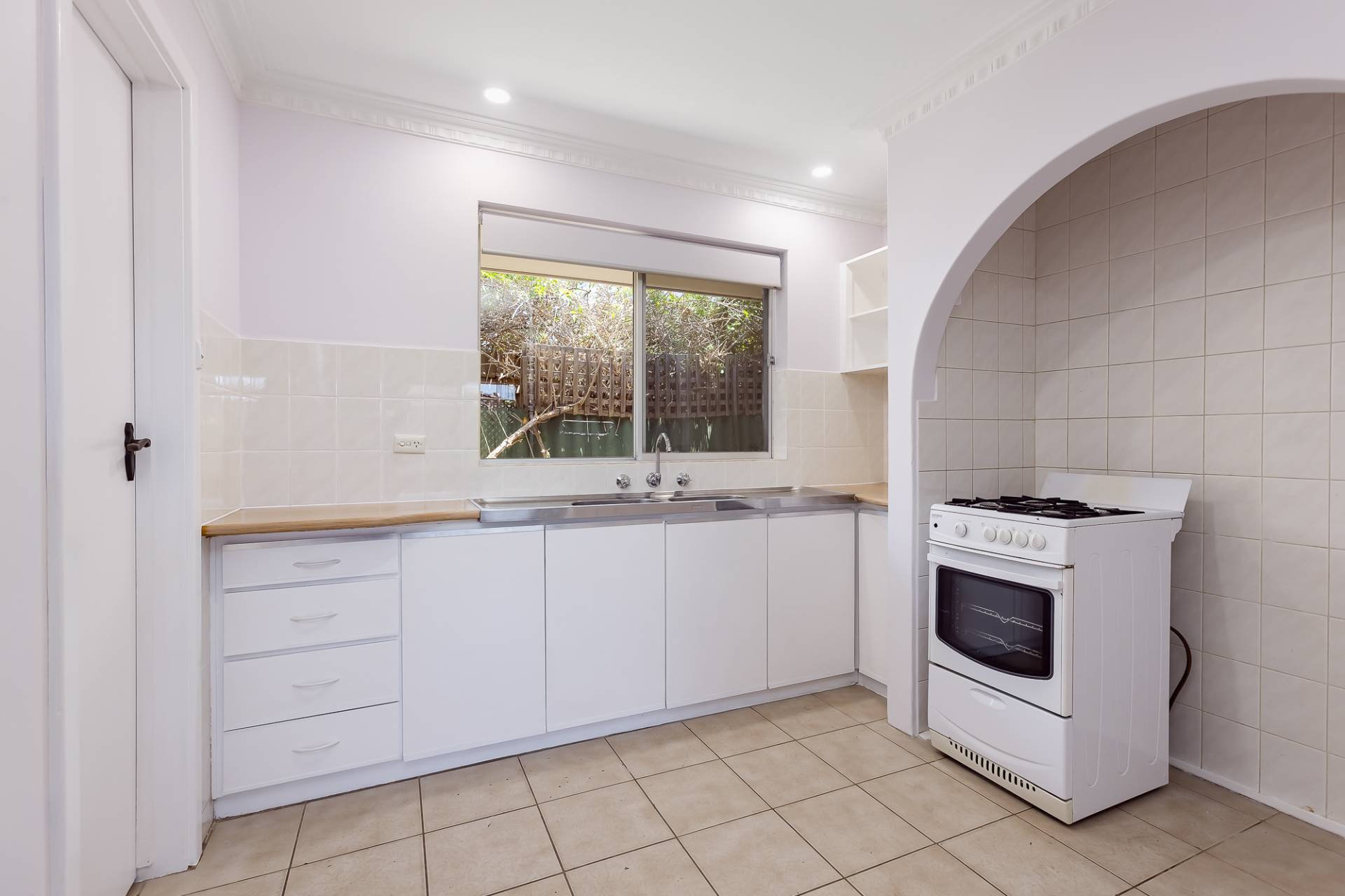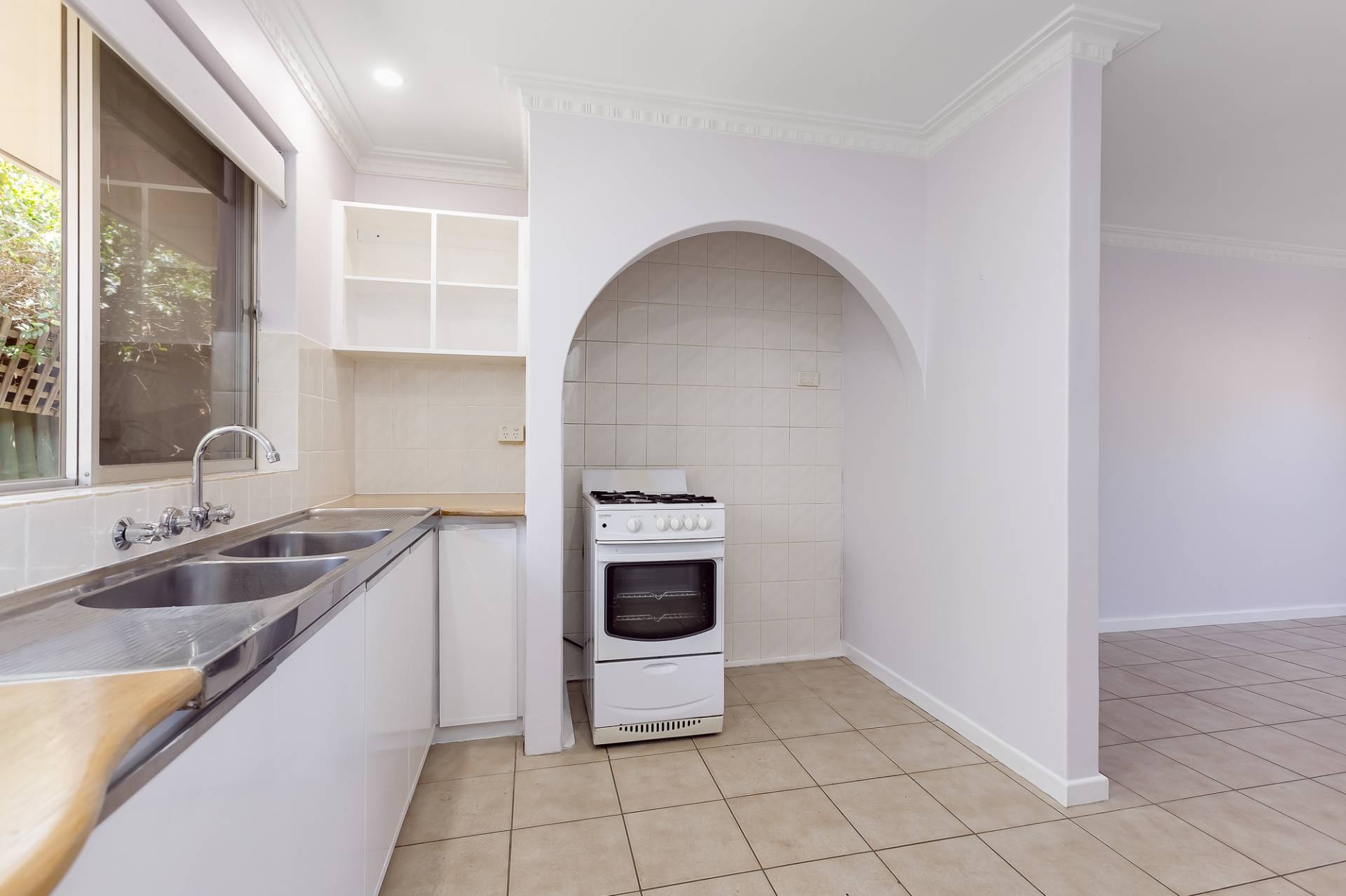 As you step inside, you're greeted by a generously sized living area featuring a split system air-conditioing unit, seamlessly flowing into a full-size dining room, perfect for entertaining guests or enjoying family dinners. The open kitchen features original cabinetry, a convenient walk-in pantry and gas stove.