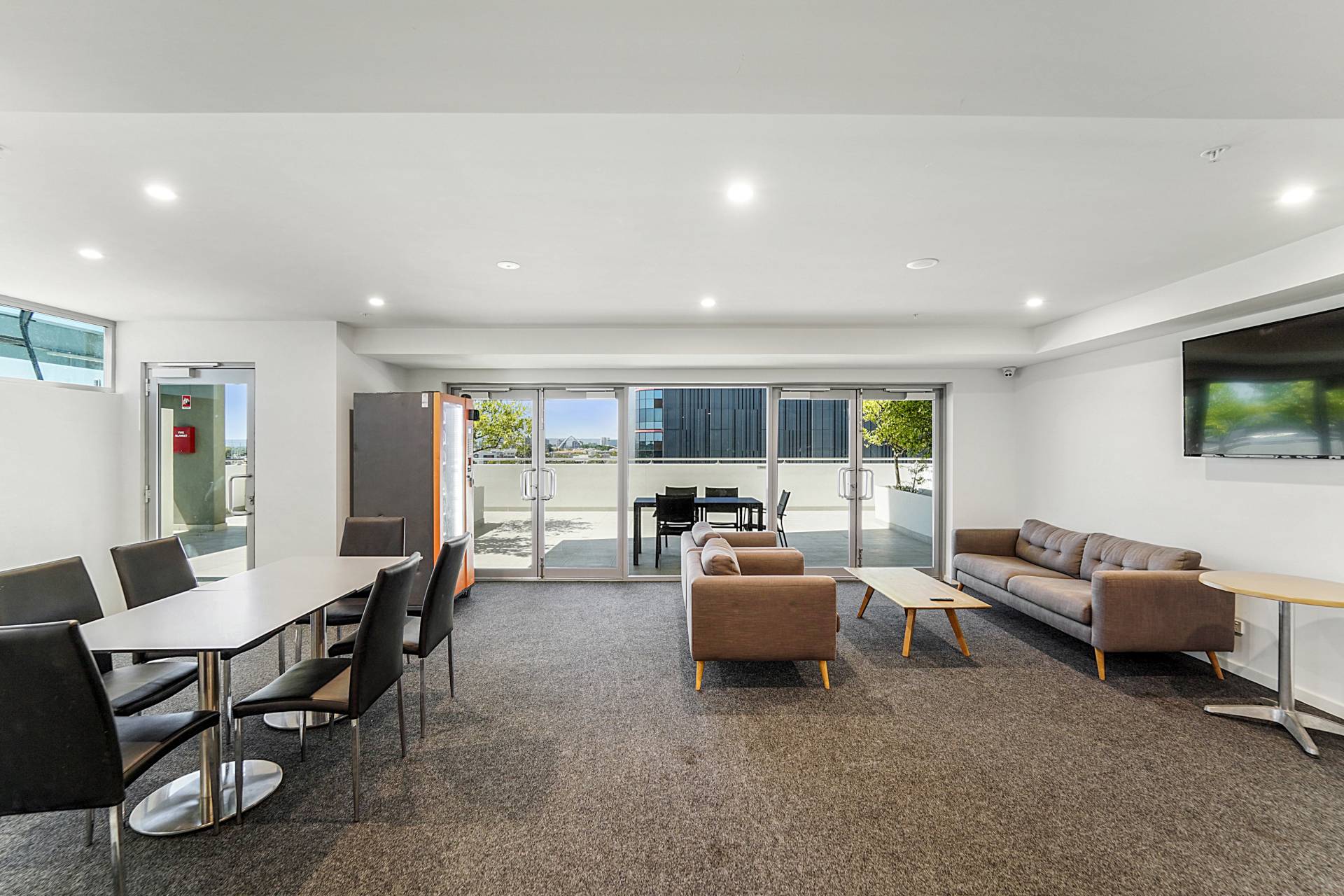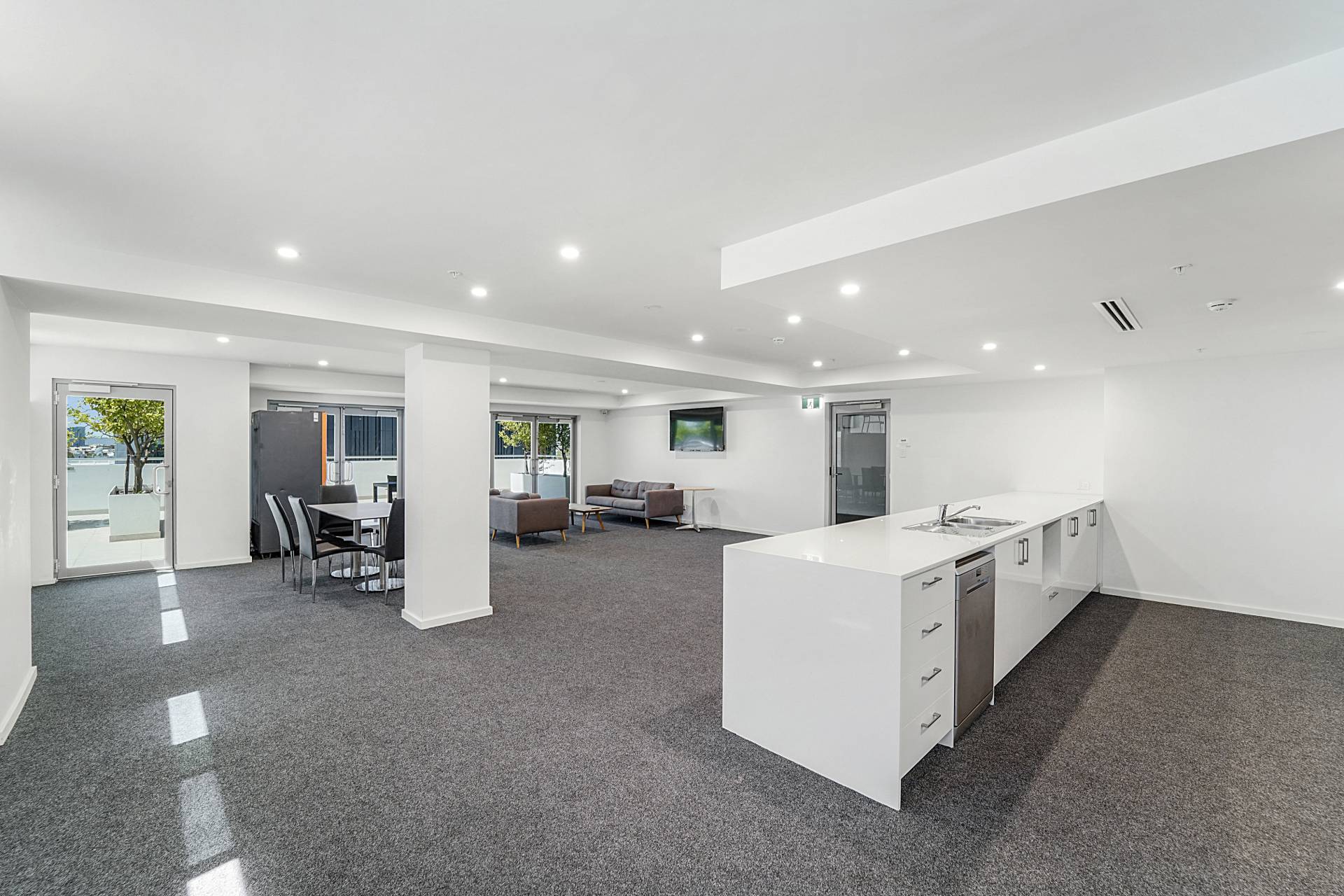 - Spacious entertaining area, includes a banquet size kitchen with a fridge, dishwasher and microwave plus a wall mounted TV, couches and tables. (You can book this out if you are entertaining)