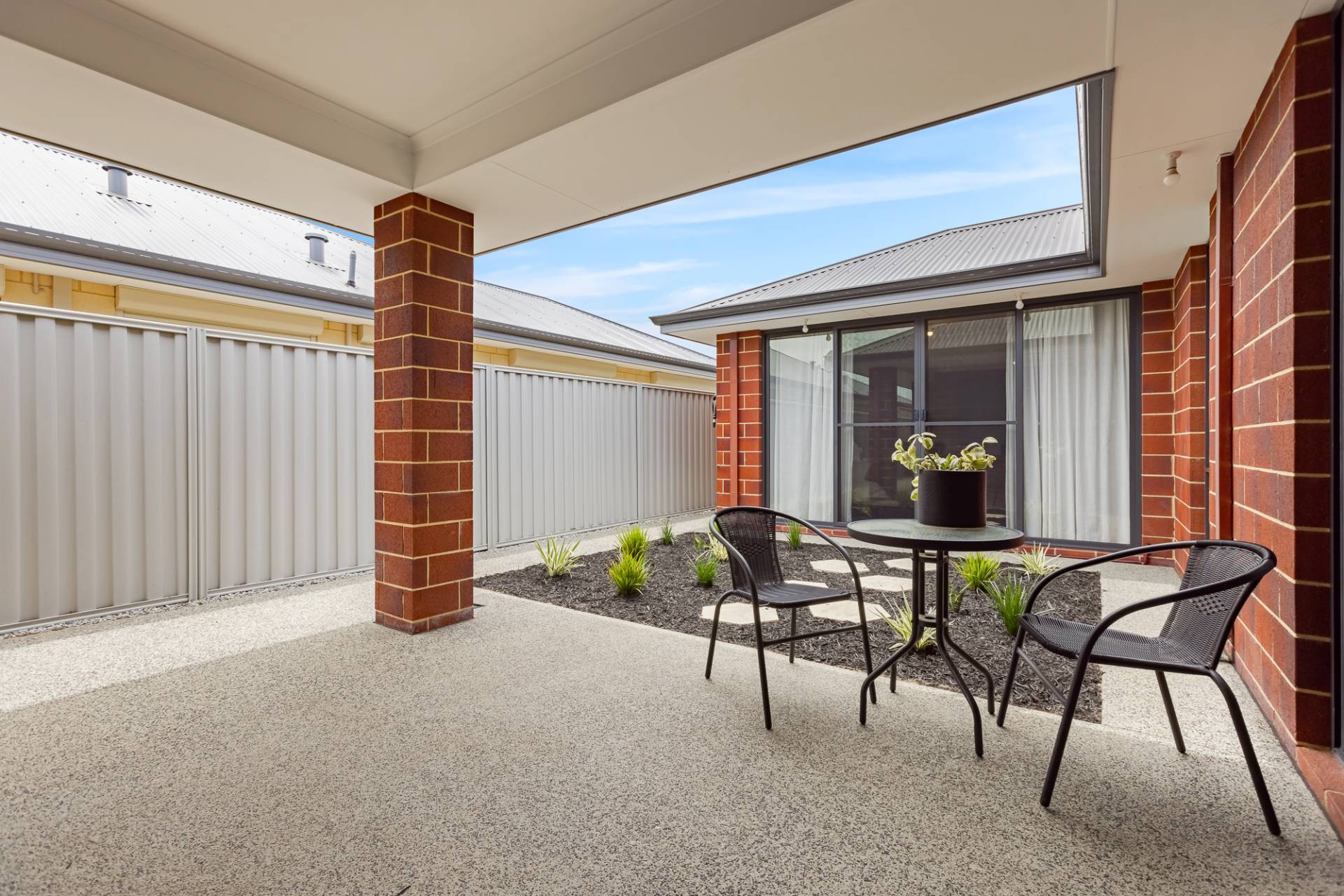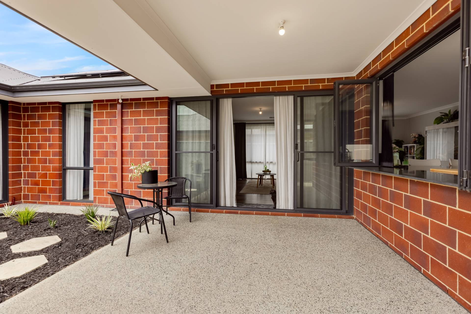Floor-to-ceiling doors and windows bathe this generous zone in ambient natural light. With bifold doors from the kitchen and sliding doors from the living room opening to the exterior, this is a home that efficiently merges indoor and outdoor spaces, creating a fantastic seamless flow in the warmer months, ideal for family-friendly entertaining or quiet relaxation. Bask in easy summertime living in the undercover patio with stylish aggregate paving wrapping around the home. Enjoy weekend breakfasts and evening dinners in the privacy of your sanctuary with a small garden area offering a touch of easy-care greenery.