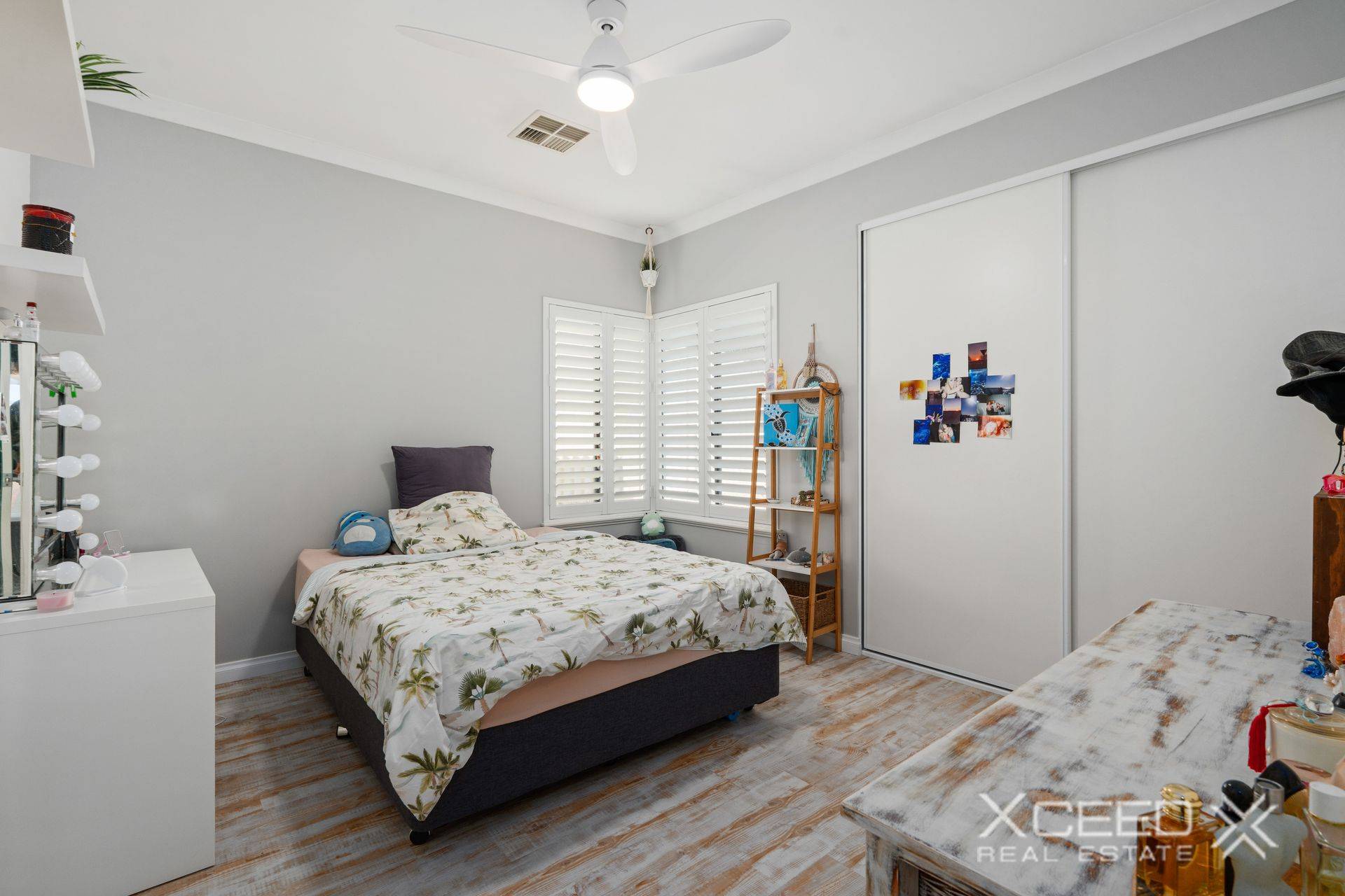 Outdoors and off the family room sits a huge enclosed alfresco-entertaining area, with bi-fold plantation shutters seamlessly extending the breezy living space to a lovely courtyard and backyard setting, with shade sails for further protection from the elements. The front yard is securely gated for peace of mind, adding another dimension when it comes to a safe haven for kids and pets.