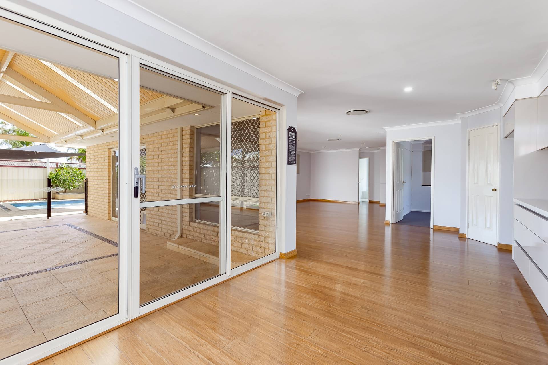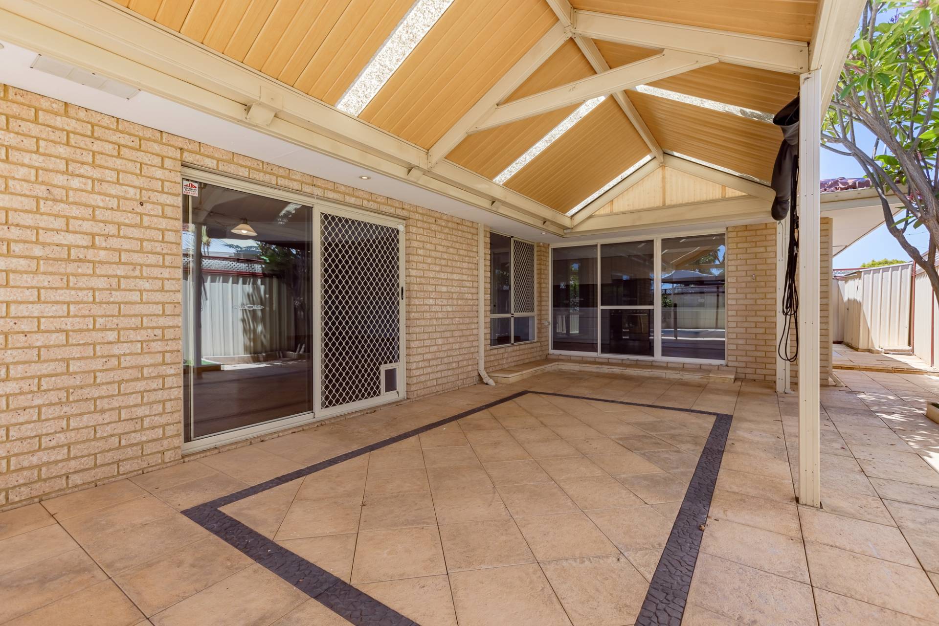 Undercover paved patio overlooking pool