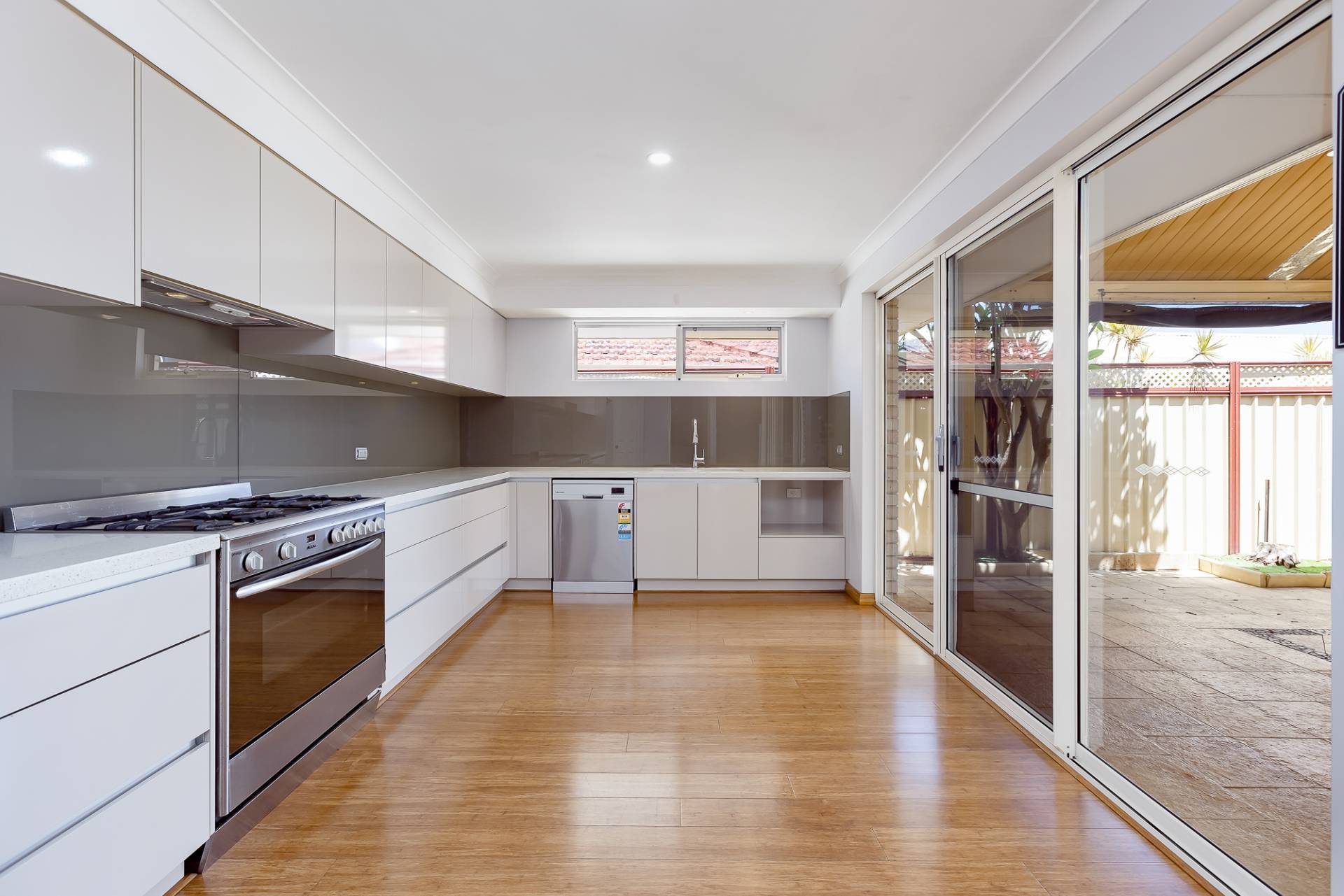Stunning, polished bamboo flooring graces the open-plan family, dining and kitchen areas – the functional hub of the ground floor with a beautiful, light-filled gourmet kitchen taking centre stage with abundant overhead cupboards, quality appliances, chef's oven and sliding doors opening out to the generous exterior patio. A separate living area at the front of the home also enables for extra space and privacy, a bonus for the growing family.