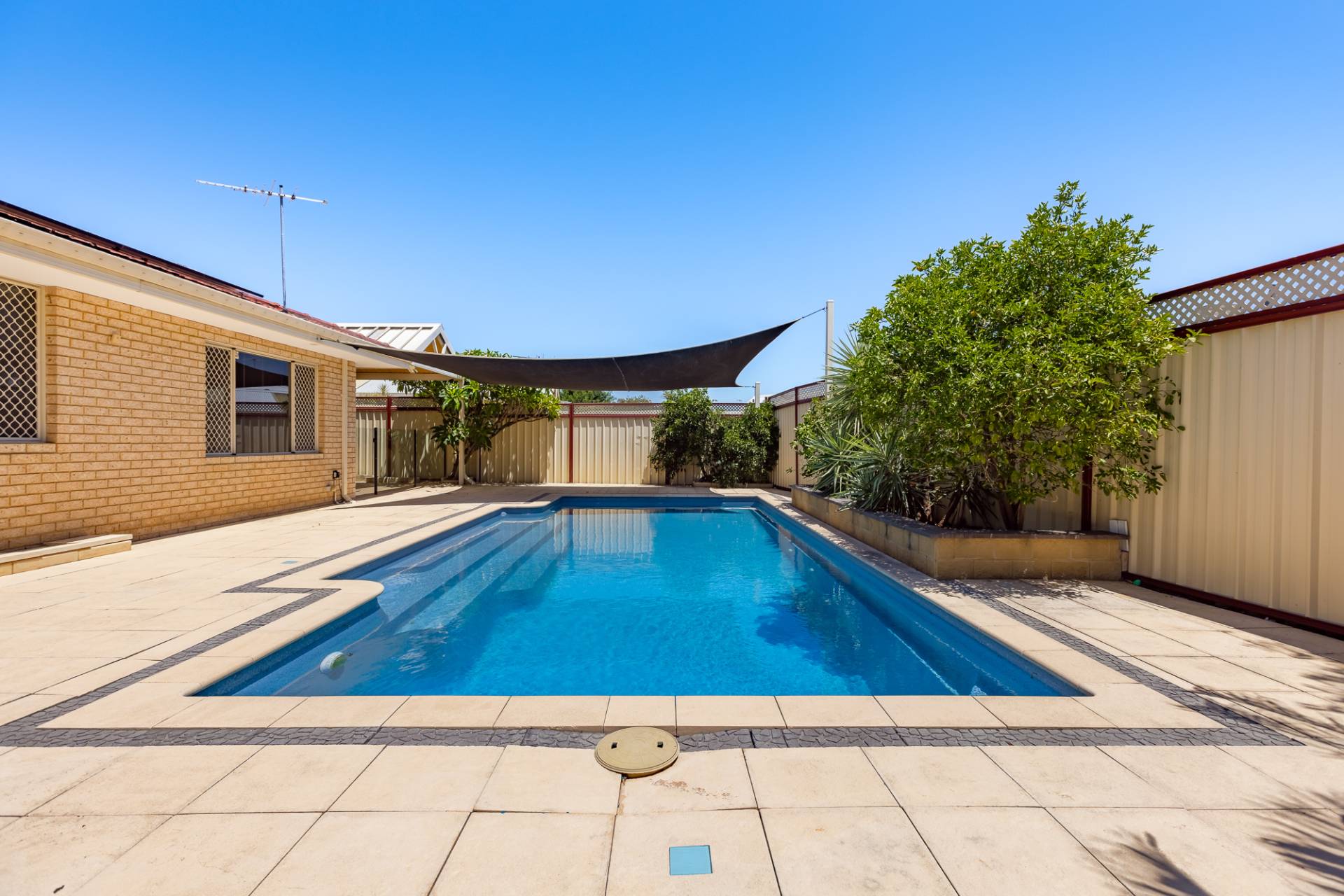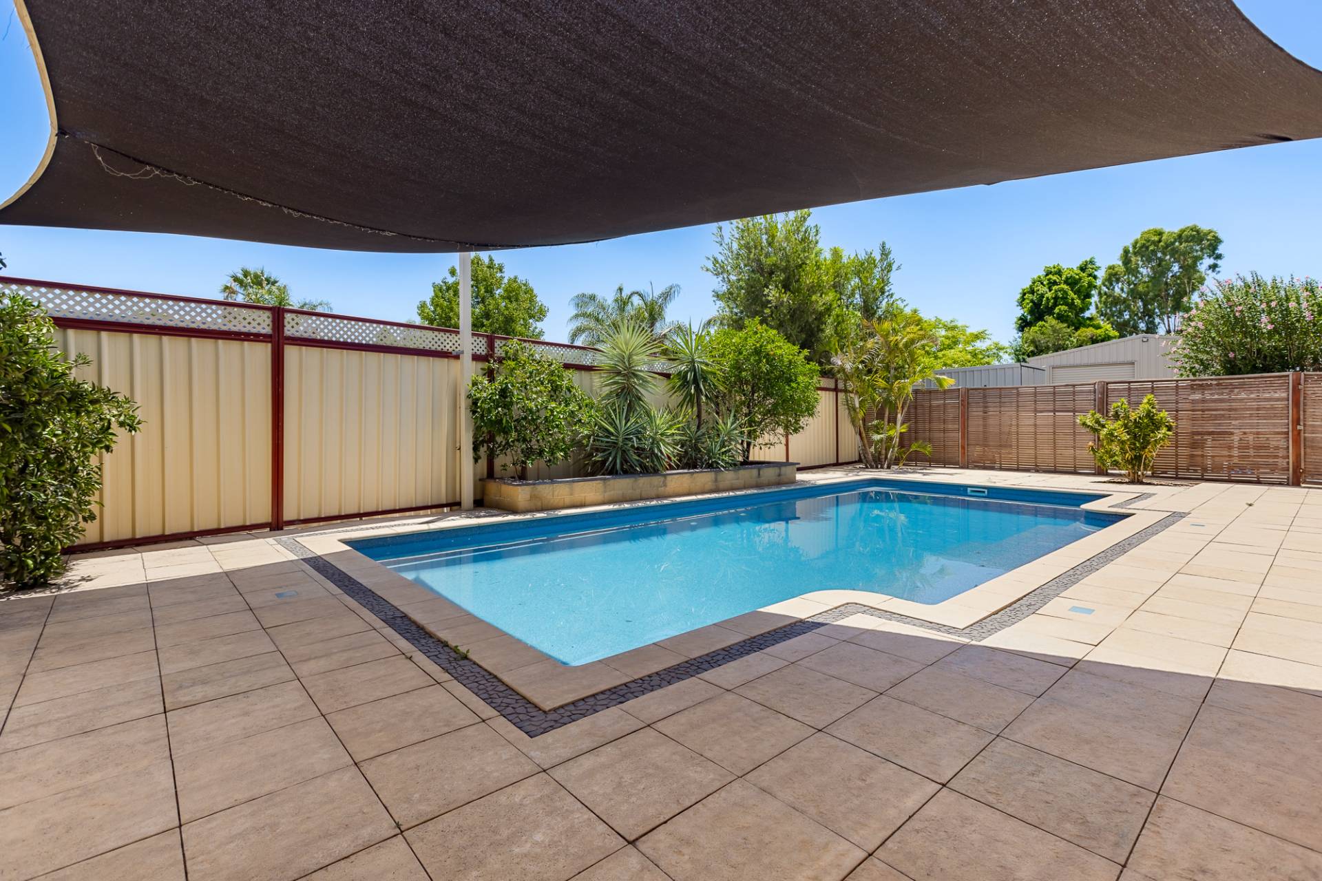 Salt chlorinated 50,000 litre swimming pool with shade-cloth