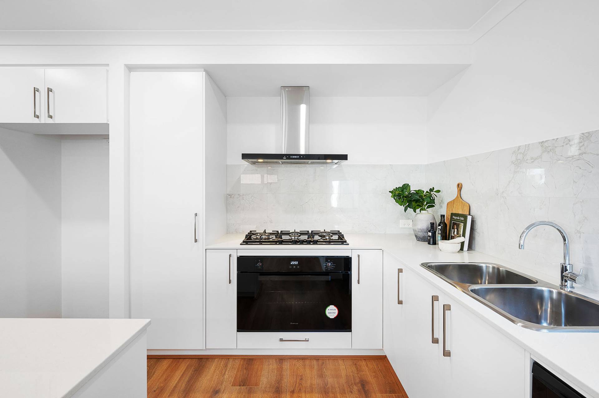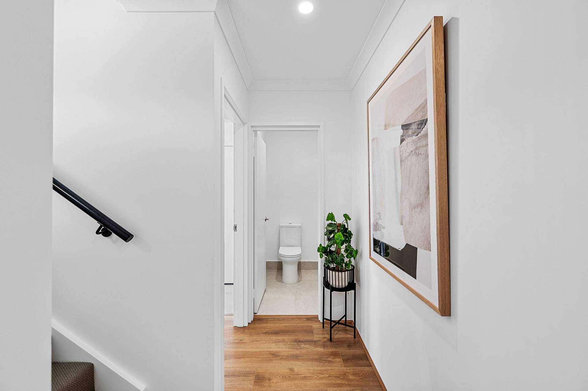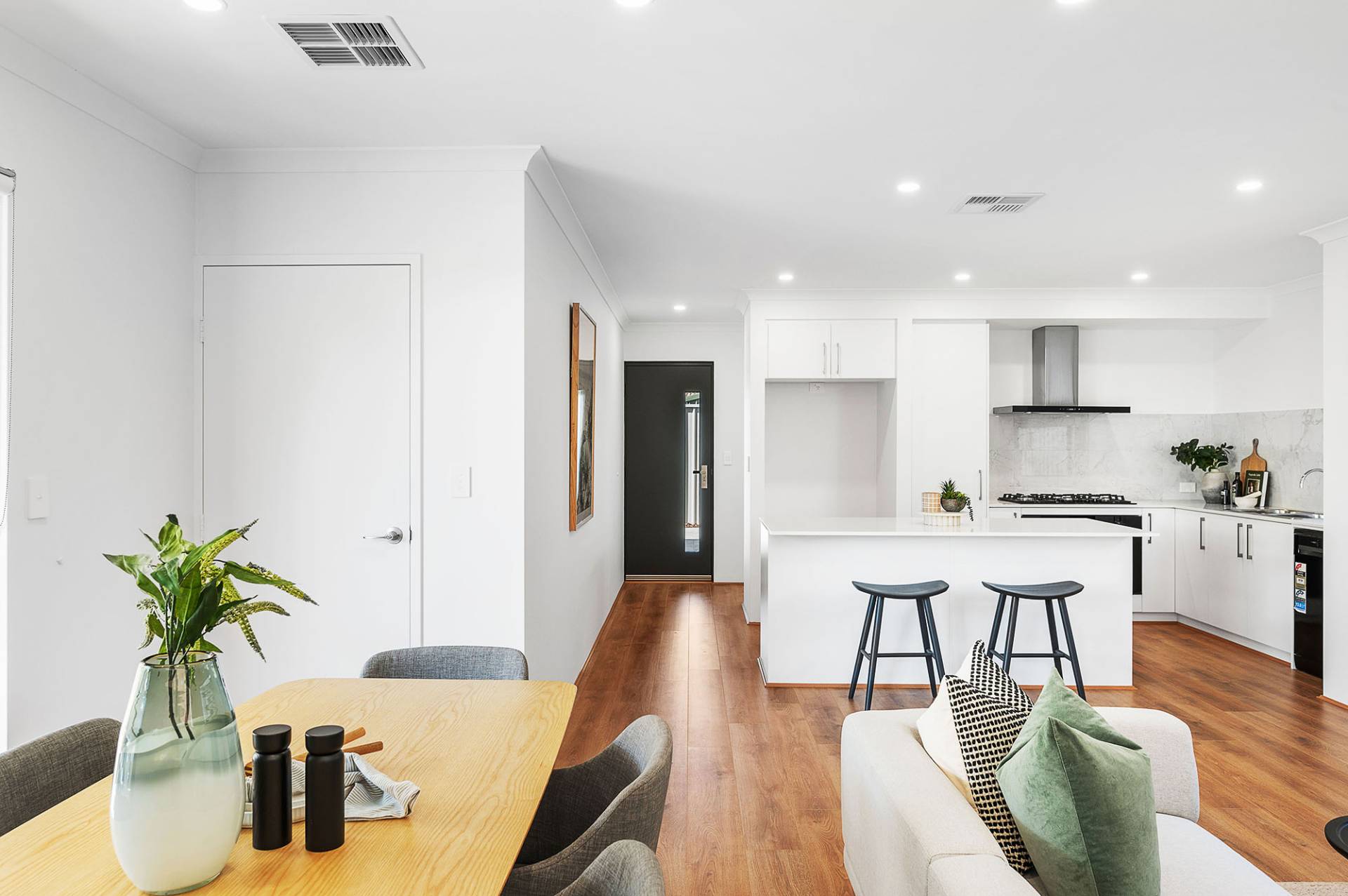• Timber styled oak flooring in open-plan living areas, hard wearing tiles in wet areas, and plush carpeting upstairs for added comfort