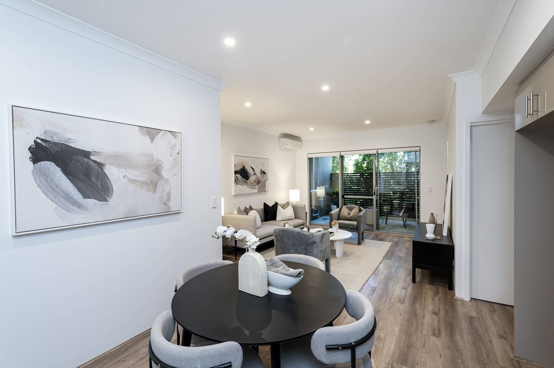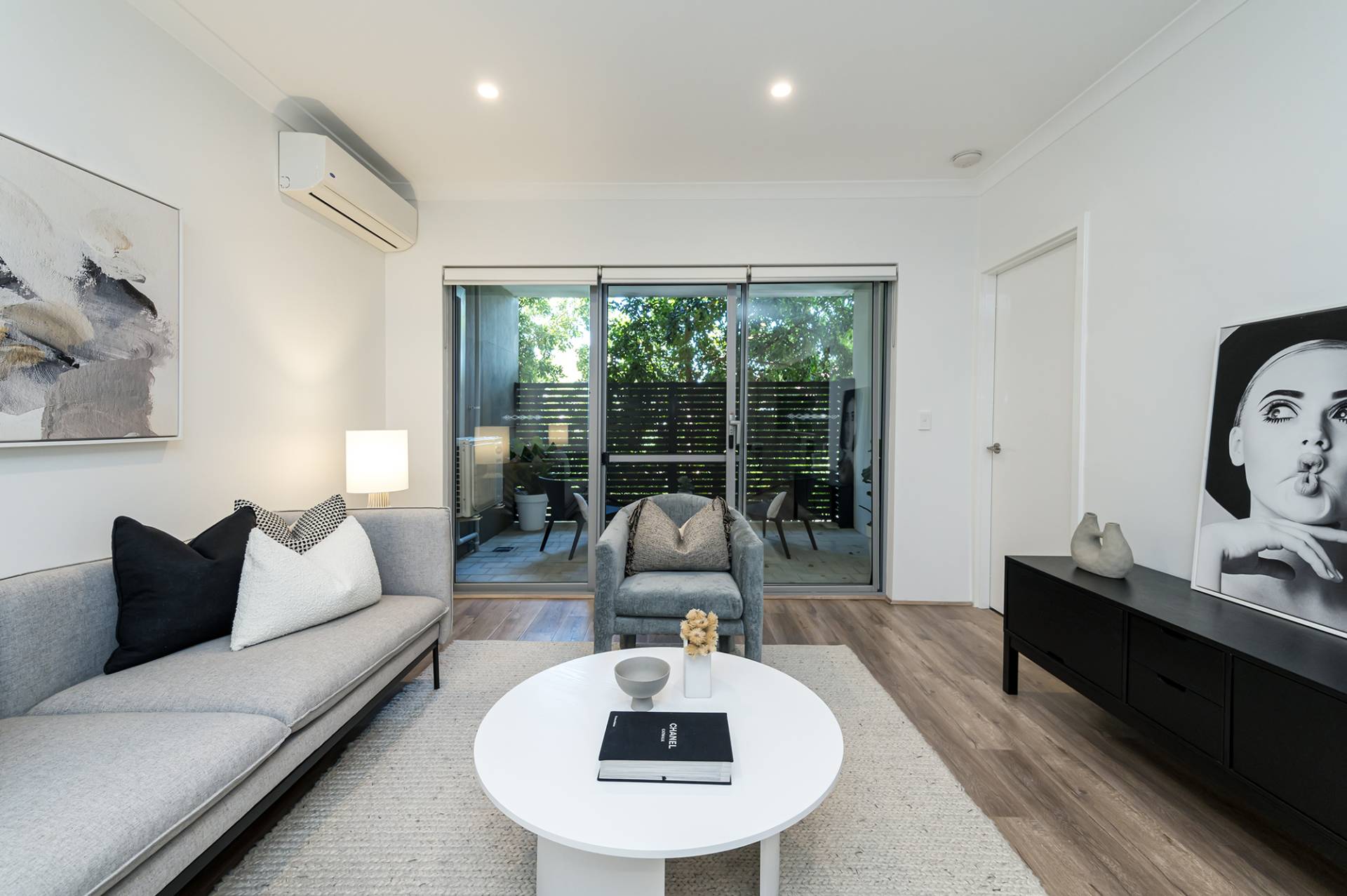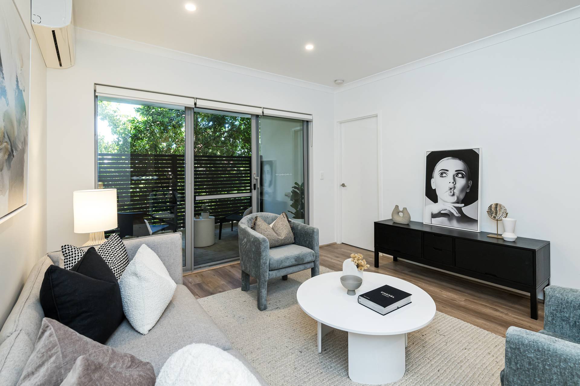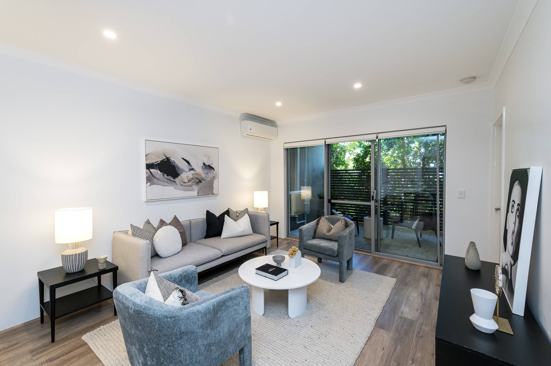 - Large open-plan living area with beautiful floorboards, split-system air conditioning, and a courtyard.