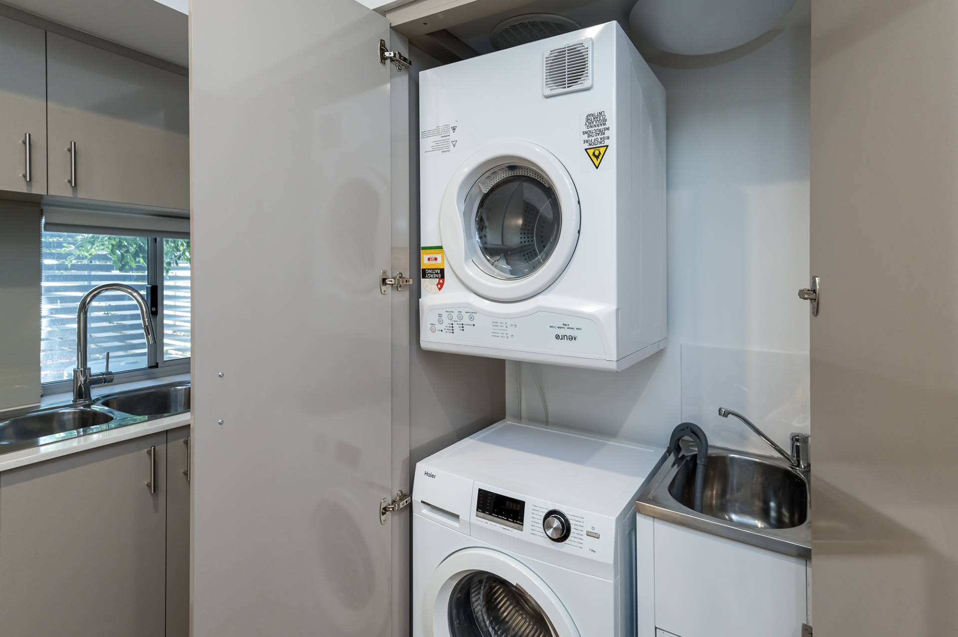 - Kitchen equipped with quality stainless steel appliances, electric hotplate, oven, glass