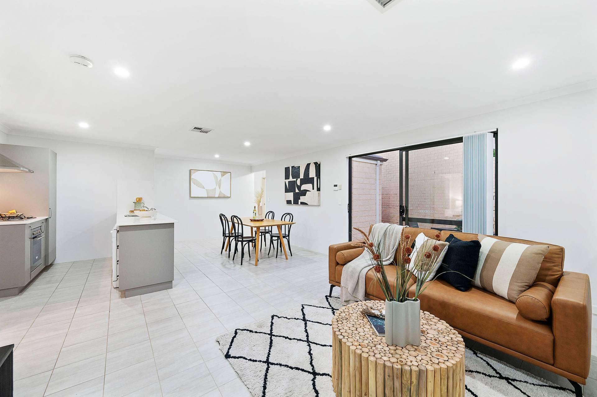 Discover the perfect blend of functionality and comfort in this thoughtfully designed home, featuring a seamless open-plan layout and ducted air conditioning throughout. The expansive, light-filled lounge effortlessly flows into a private, north-facing paved courtyard, enclosed by a secure perimeter wall—ideal for peace of mind. With access from both the garage and living area, entertaining family and friends during summer BBQs is a breeze.