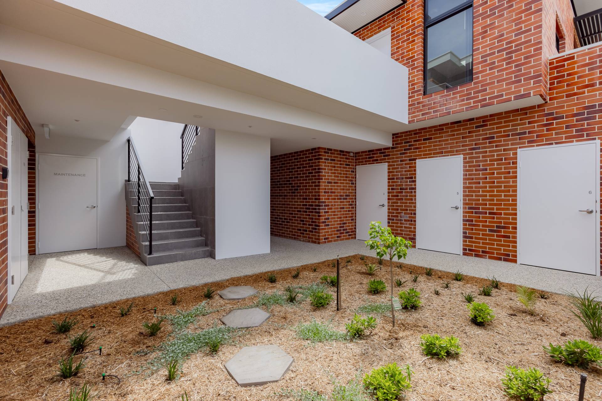 The open-plan living area seamlessly flows into a private front courtyard, creating the perfect space for relaxation and entertaining. Secure parking is included, along with additional storage and facilities for electric vehicle charging. The residence is situated within a secure complex with intercom access and gated entry, ensuring peace of mind.