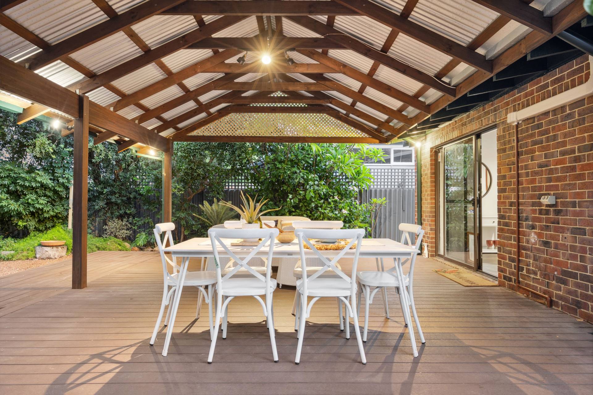 Designed with both relaxation and entertaining in mind, this home features a separate living area with fireplace that provides a cozy retreat. The kitchen is situated at the heart of the home offering ample storage, beautiful cabinetry and breakfast bar. The dedicated dining room with vaulted ceiling is ideal for family meals or hosting guests, and it flows effortlessly onto the expansive covered alfresco area. This outdoor space is a true highlight, boasting a beautiful timber deck surrounded by lush gardens and mature peppermint tree providing ample shade for this tranquil outdoor area.