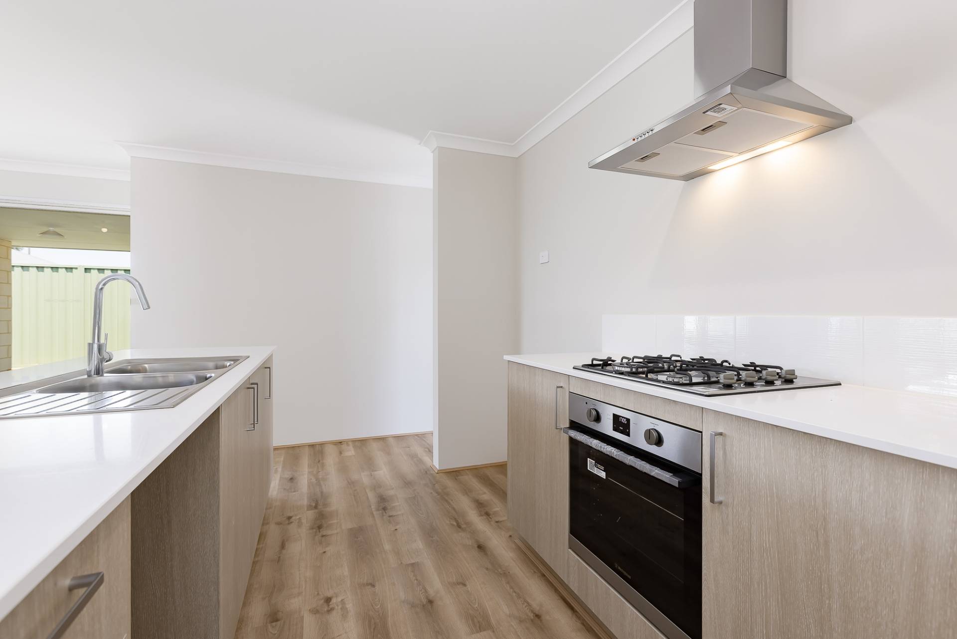- Stylish kitchen equipped with a gas cooktop, oven and elegant stone benchtops