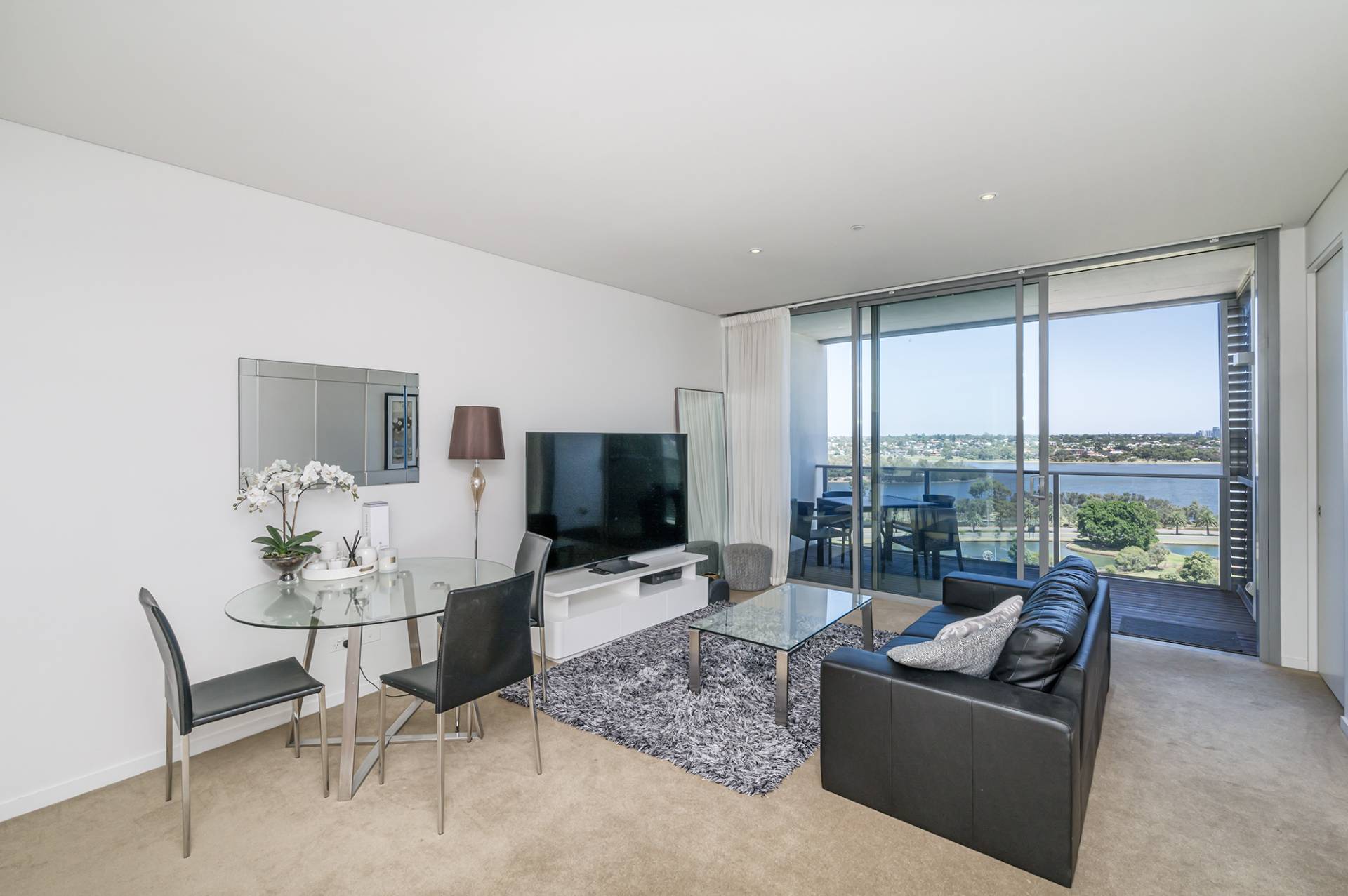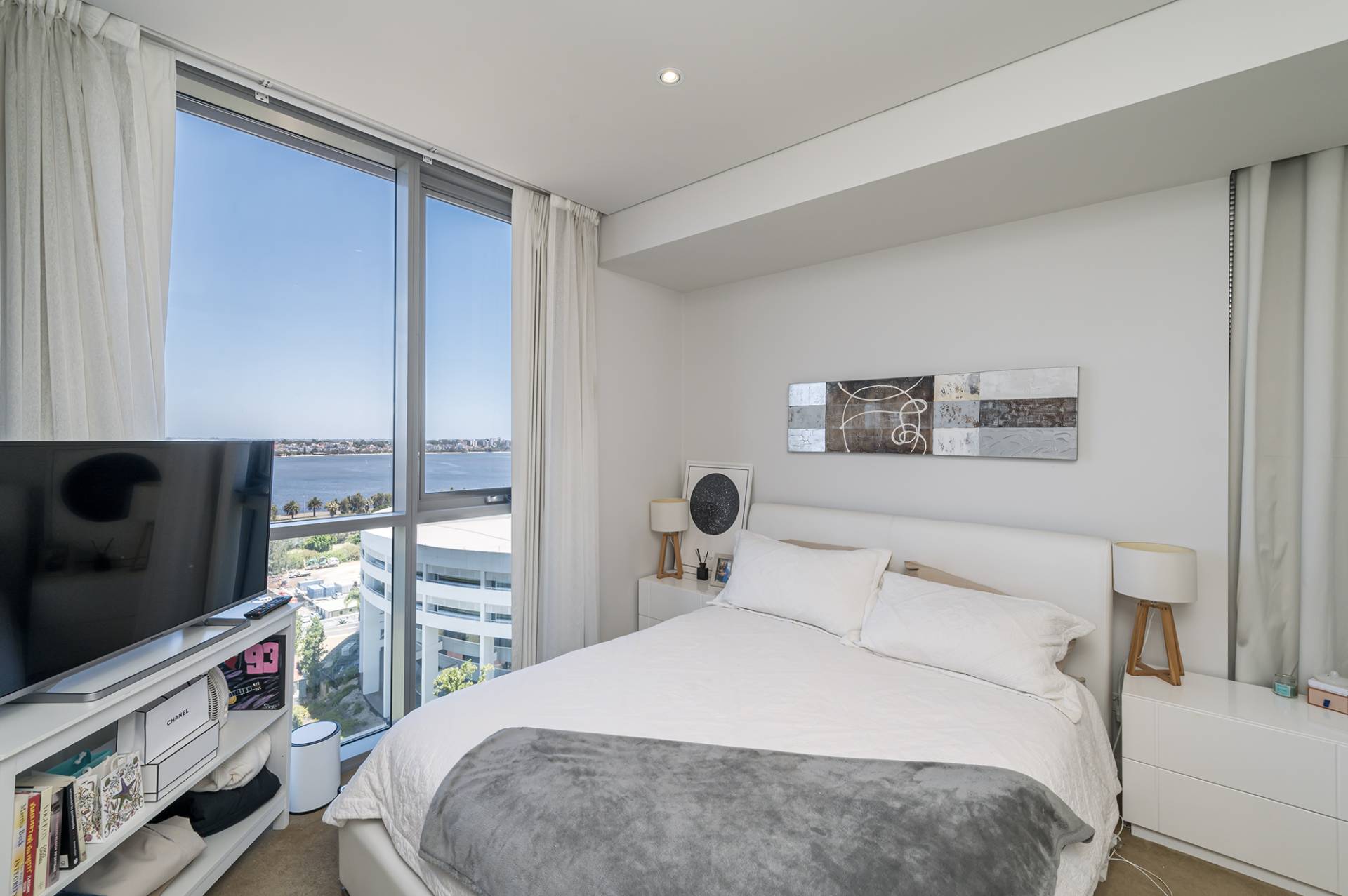Seize this rare opportunity to indulge in an elevated lifestyle within the prestigious Queens Riverside QIII Apartments. This sophisticated 2-bedroom, 1-bathroom residence on the 13th floor offers a private sanctuary with breathtaking south-facing views of the stunning Swan River.