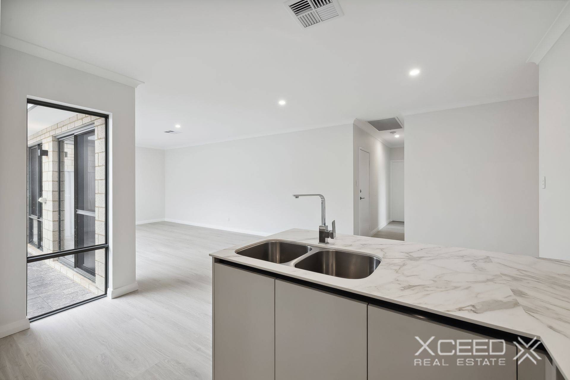 Inside, you'll find a neutral colour palette that creates a fresh and inviting atmosphere, complemented by ducted air-conditioning to keep you comfortable all year round. The floor plan's main hub is a generous open-plan living, dining and kitchen area with a storage pantry and connecting laundry.