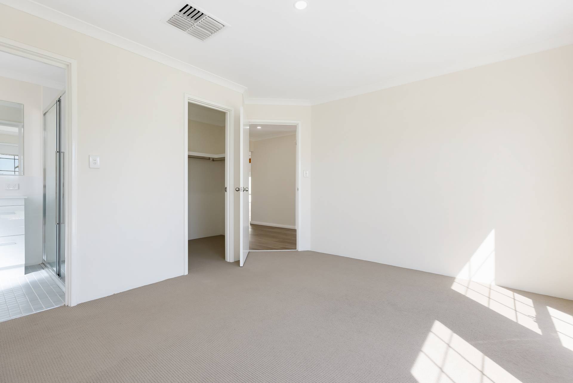 The master suite is a private retreat, featuring a walk-in robe and a luxurious ensuite with a spacious, contemporary shower. The three additional bedrooms are generously sized, filled with natural light, and offer built-in storage for added convenience.