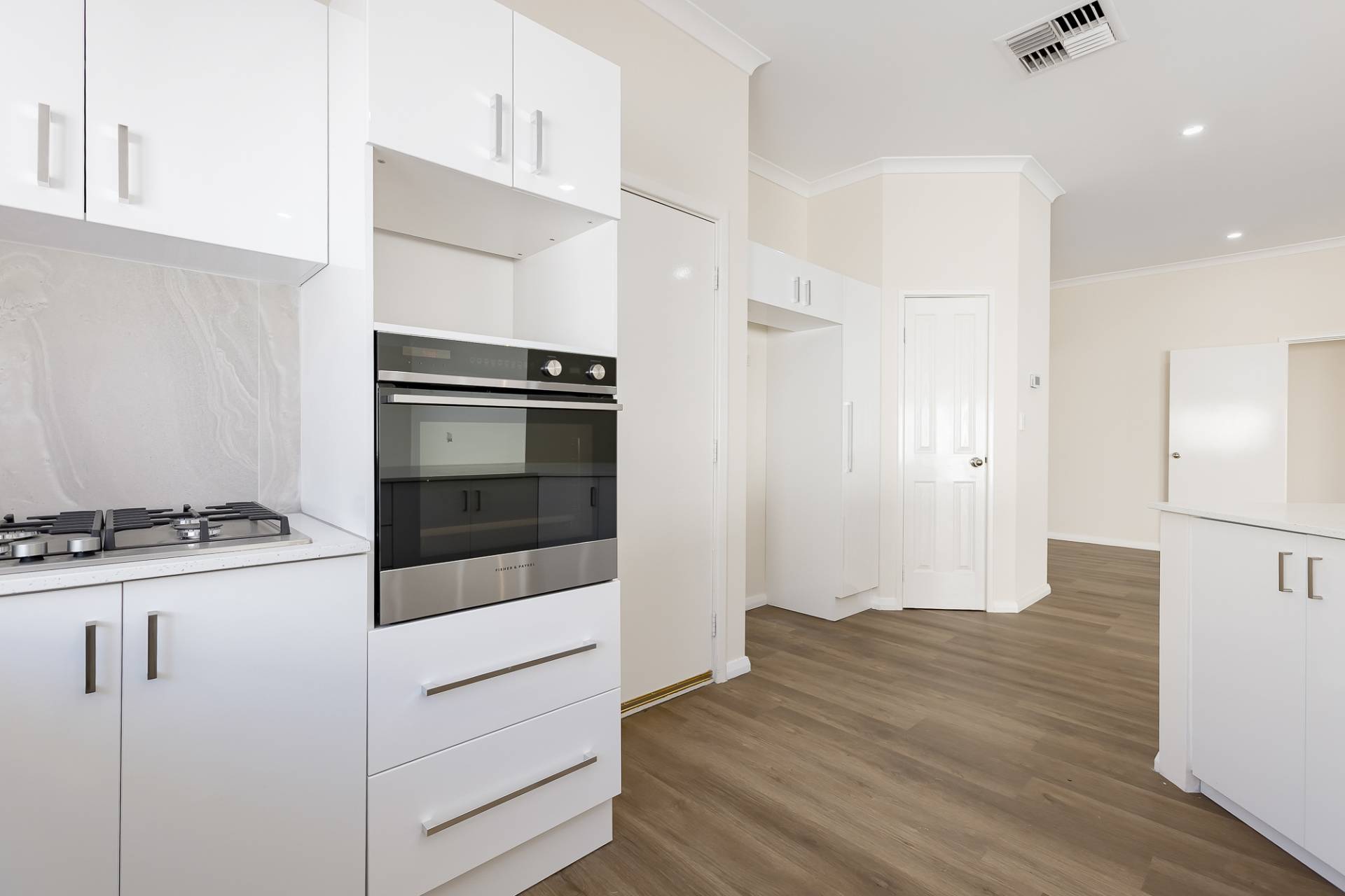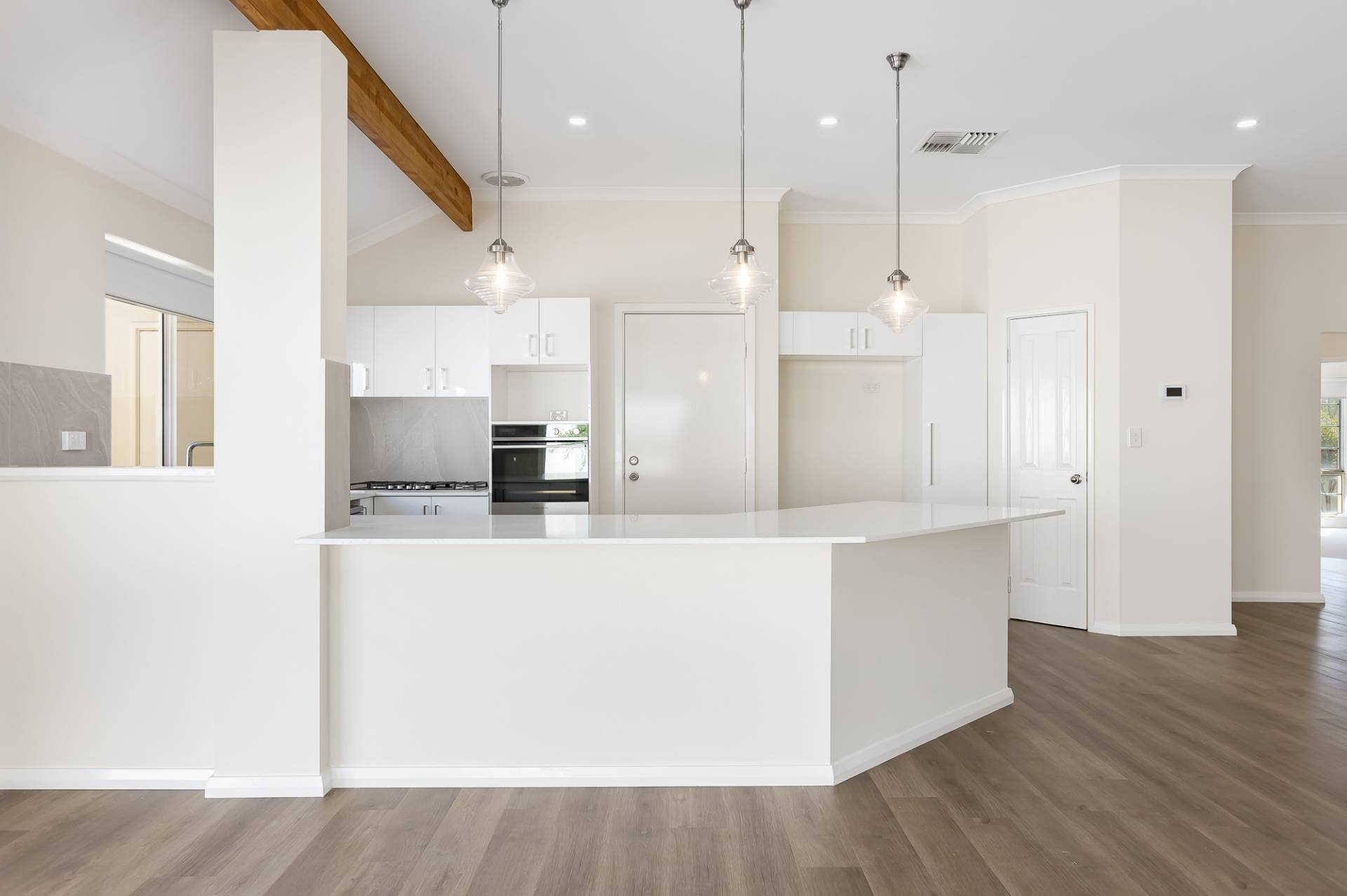 The expansive living and dining areas seamlessly flow into the stylish kitchen, complete with ample storage, sleek stone benchtops, and a breakfast bar. Sunlit interiors provide a welcoming space to cook, dine, and unwind, while a dedicated study nook offers a practical work-from-home solution.