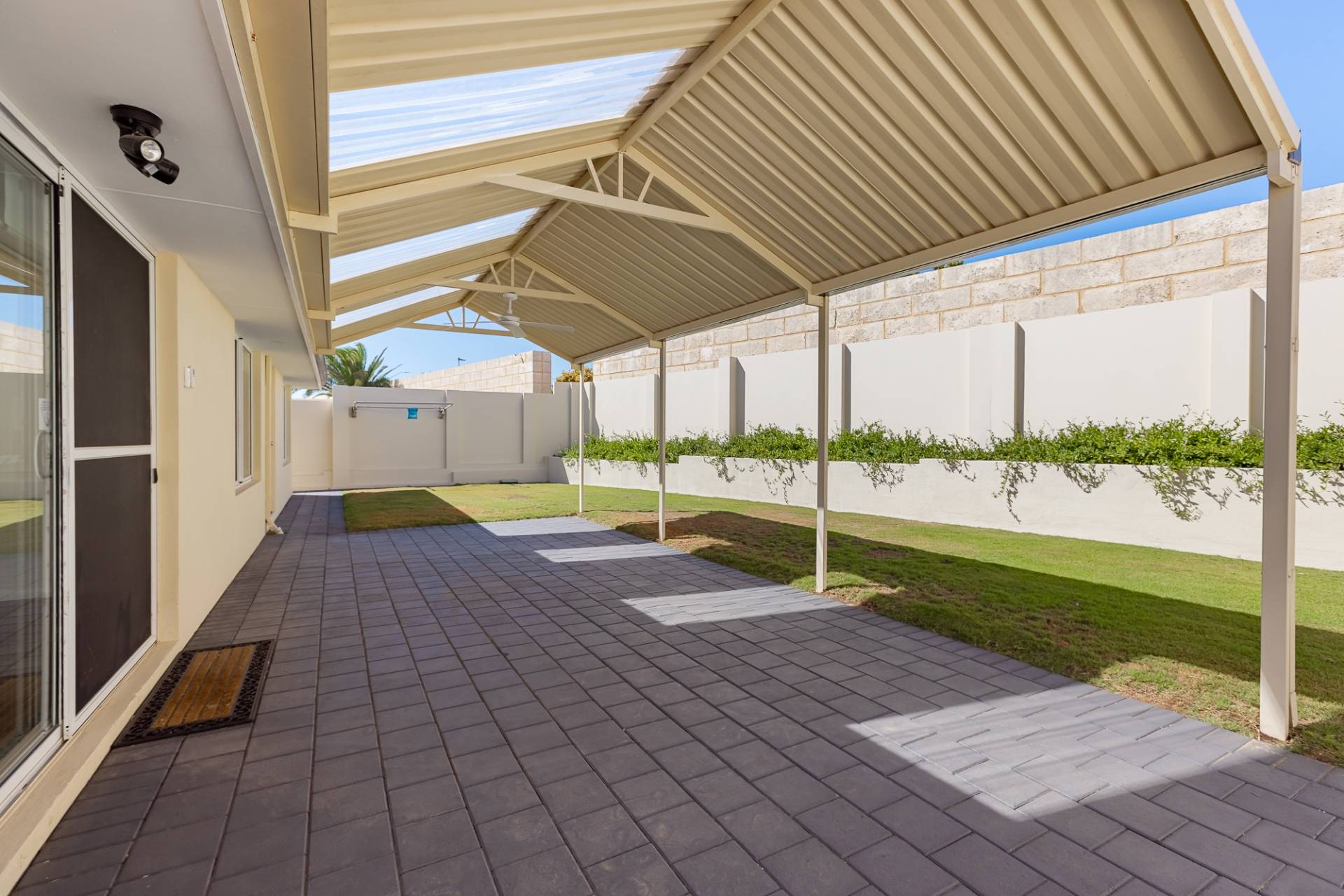 Step outside to the private, covered alfresco area, perfect for year-round entertaining. Framed by high walls for privacy, this space is ideal for relaxing, dining, or hosting barbecues with family and friends.