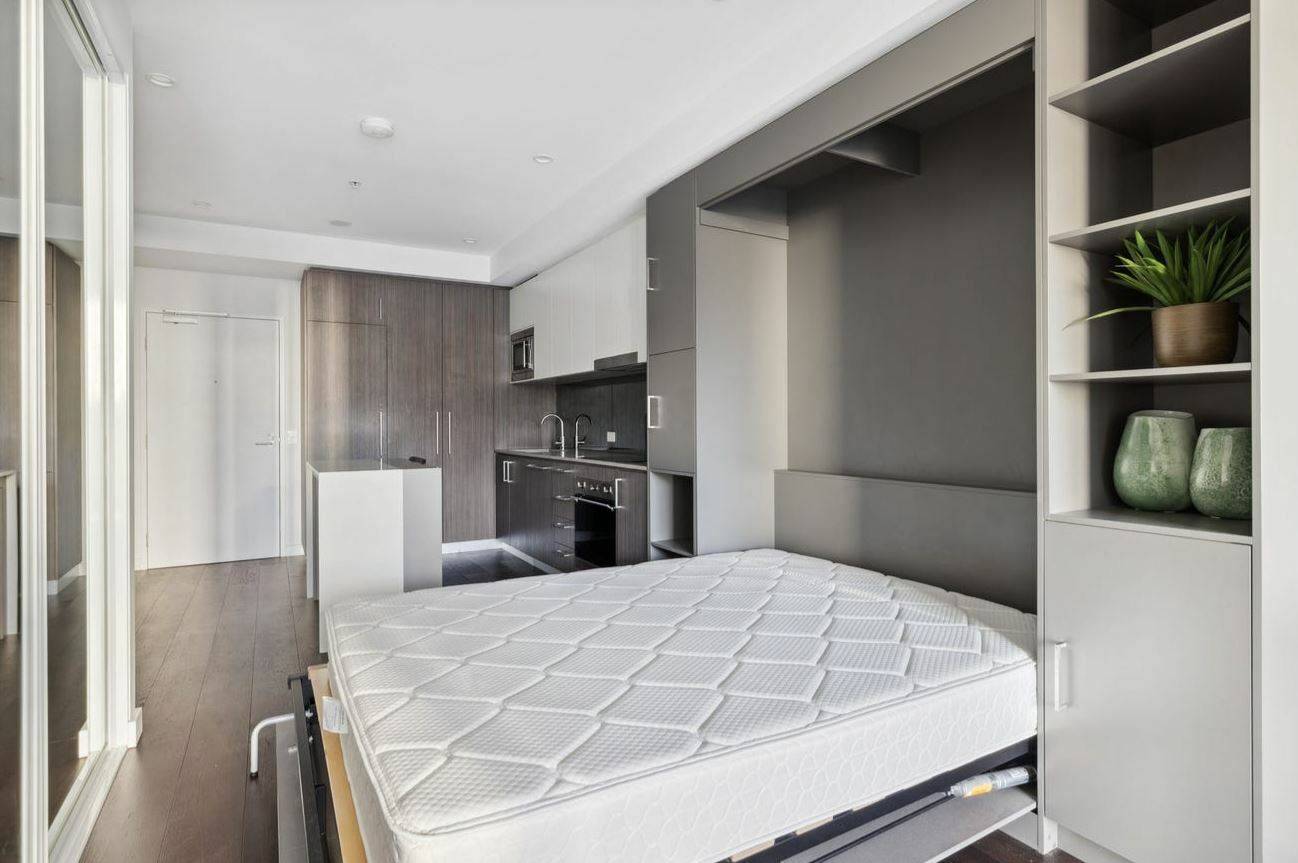 This NV studio residence offers you top quality finishes, high-end appliances, and neutral colour schemes, with clever use of space making easy inner city living a breeze!