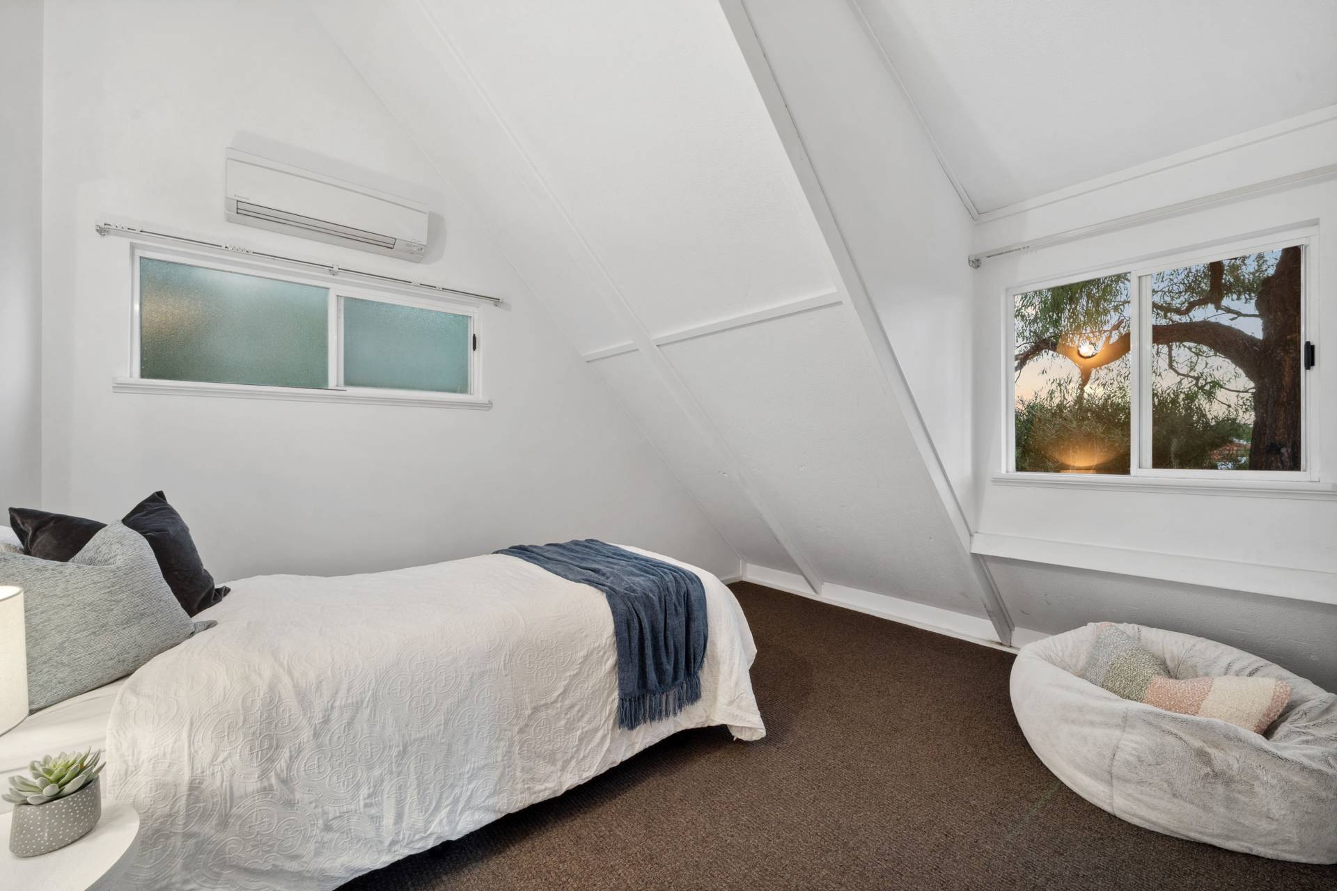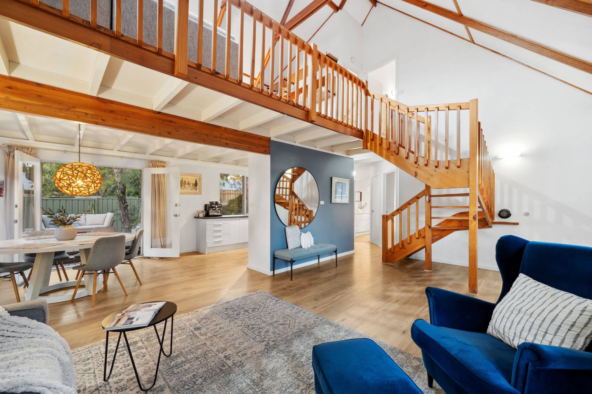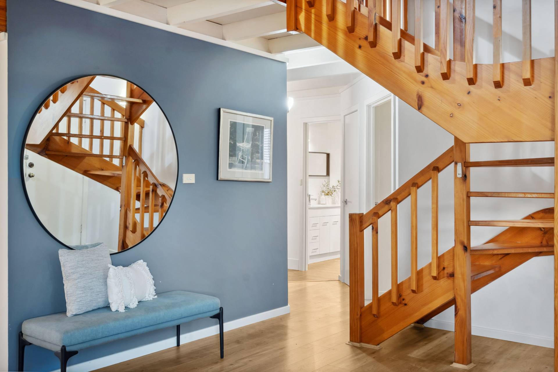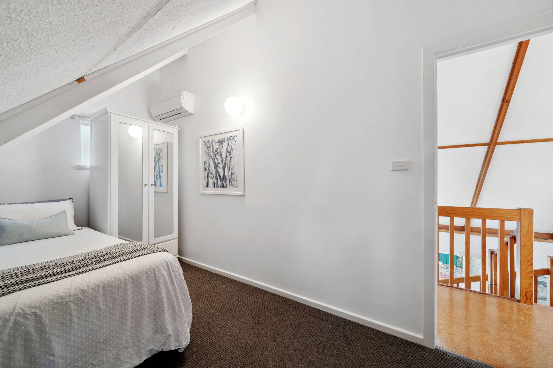 The main bedroom is conveniently located downstairs, complete with air conditioning for year-round comfort. It sits next to the bathroom and a separate laundry, offering both practicality and privacy. As you go up the feature timber staircase you will find two additional bedrooms which accompany a versatile living area that can be transformed into a study, activity space, or a cozy sitting room—the possibilities are endless.