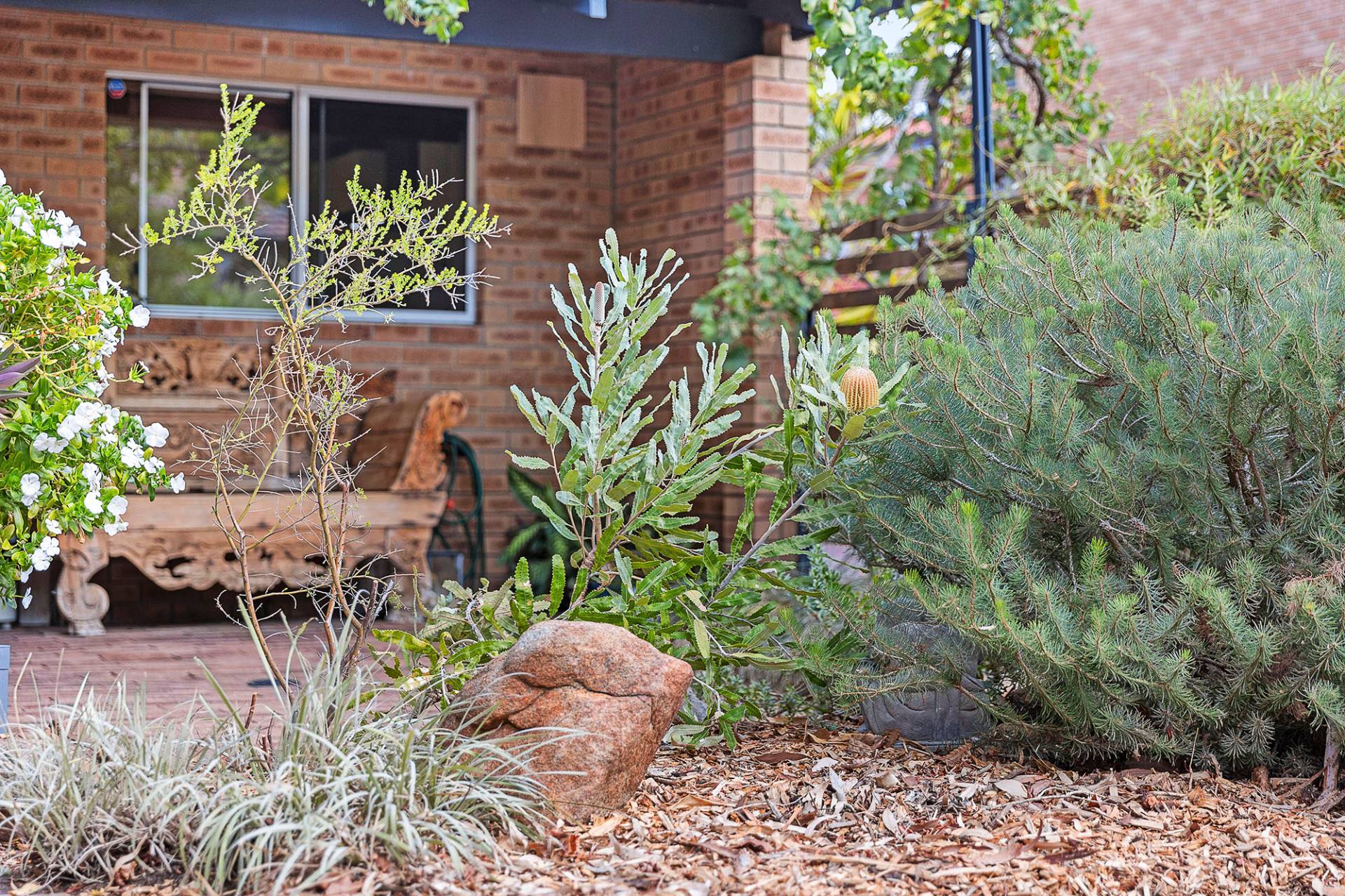 - Low-maintenance, water wise Native gardens at front of home.