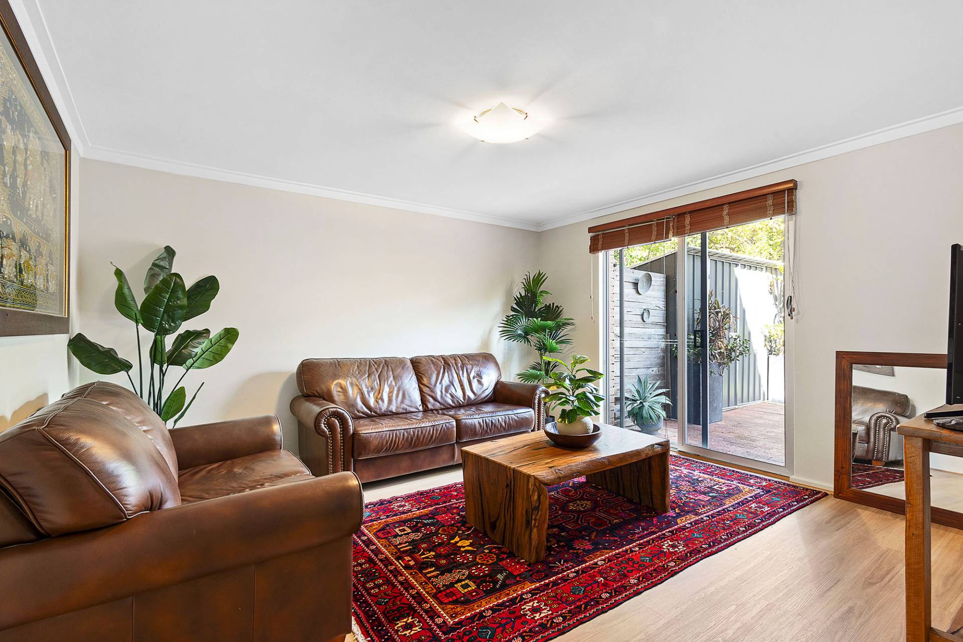 The separate dining and living area allows for family members to enjoy separate activities. The living space opens onto the private rear well-maintained courtyard.