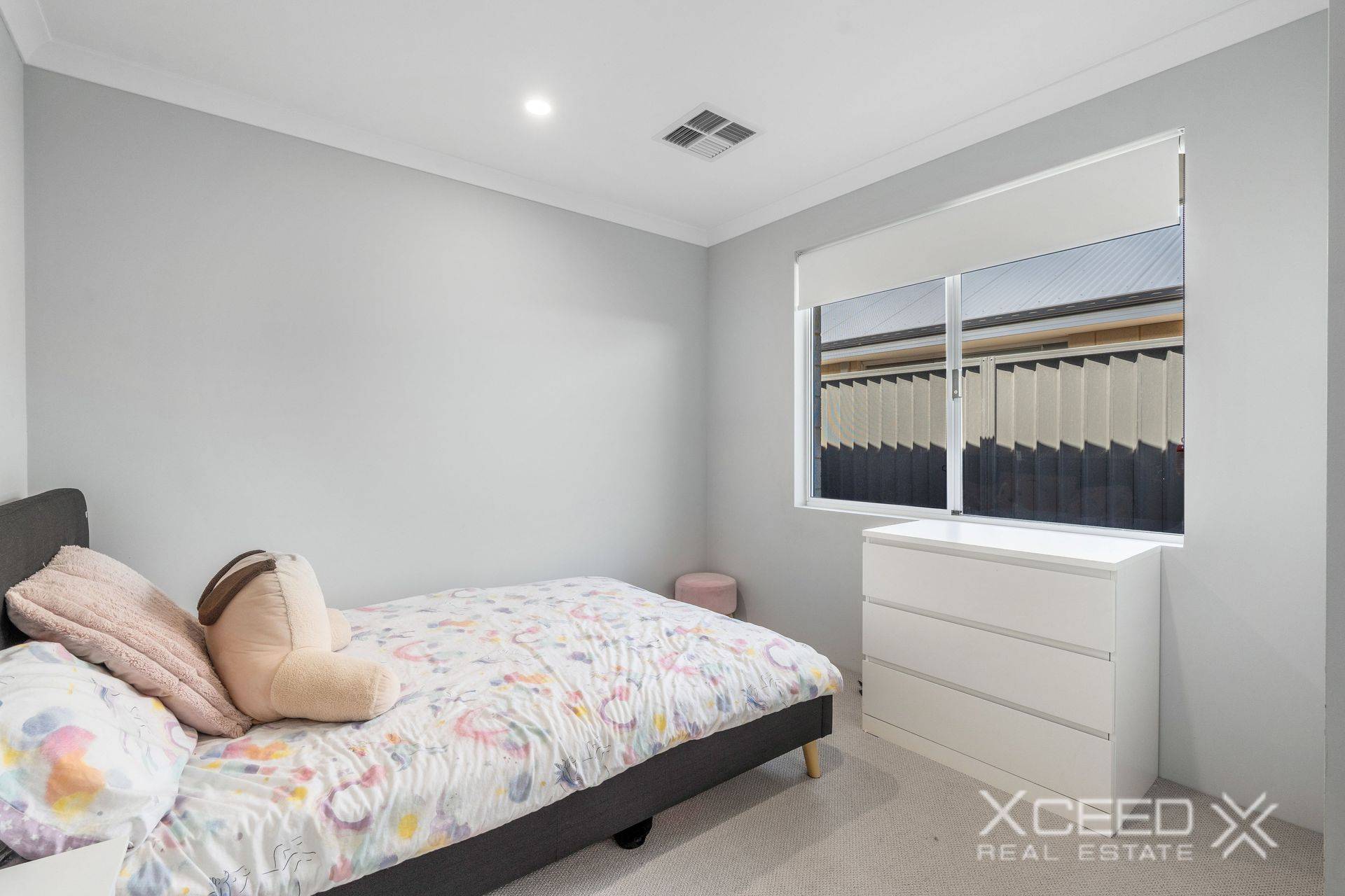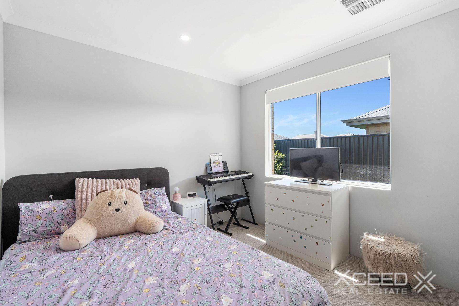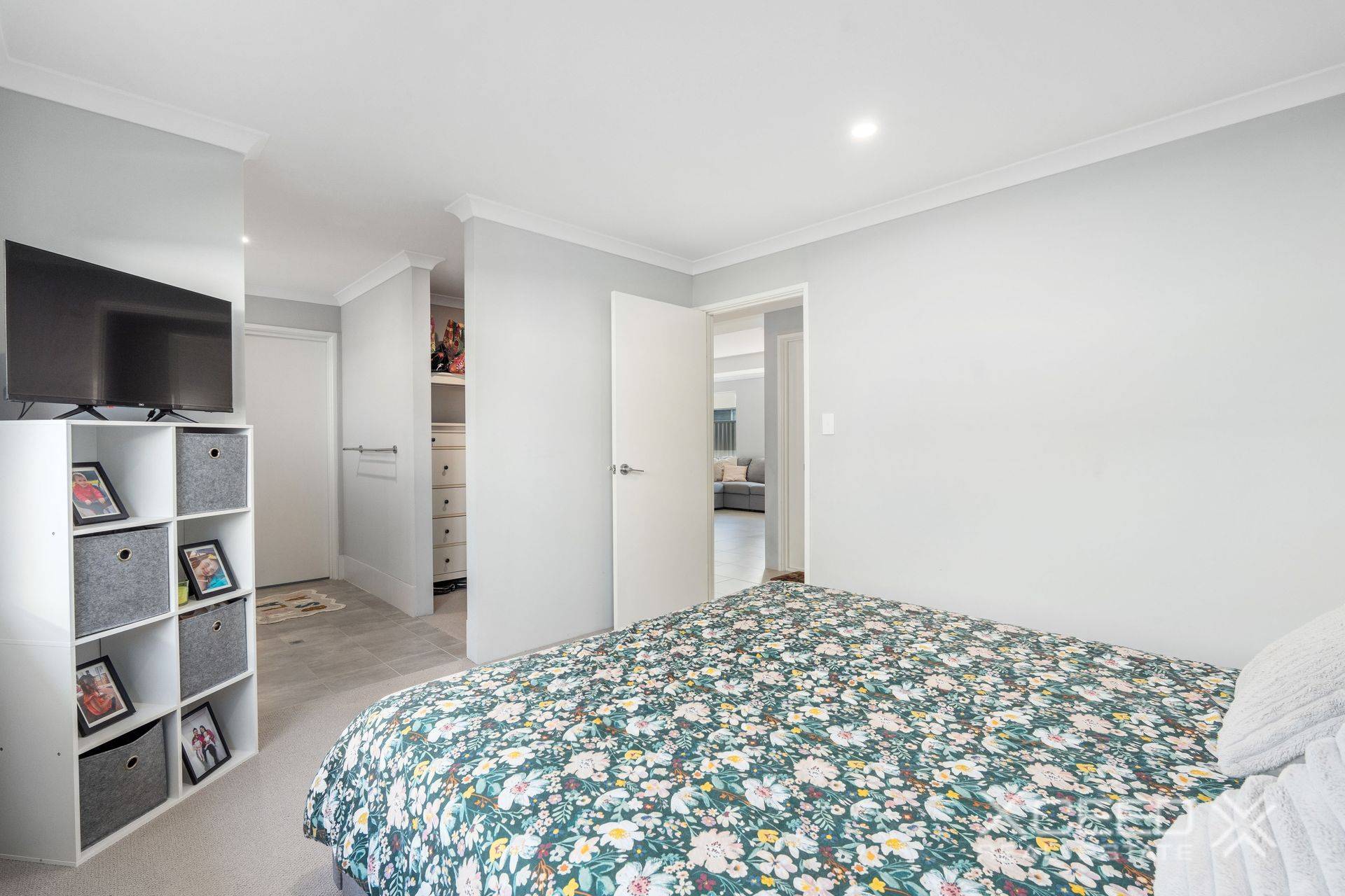 A generous master-bedroom suite feels more like a retreat due to its generous proportions and plays host to a walk-in wardrobe, as well as a sleek ensuite bathroom with a stone vanity, shower and separate toilet.