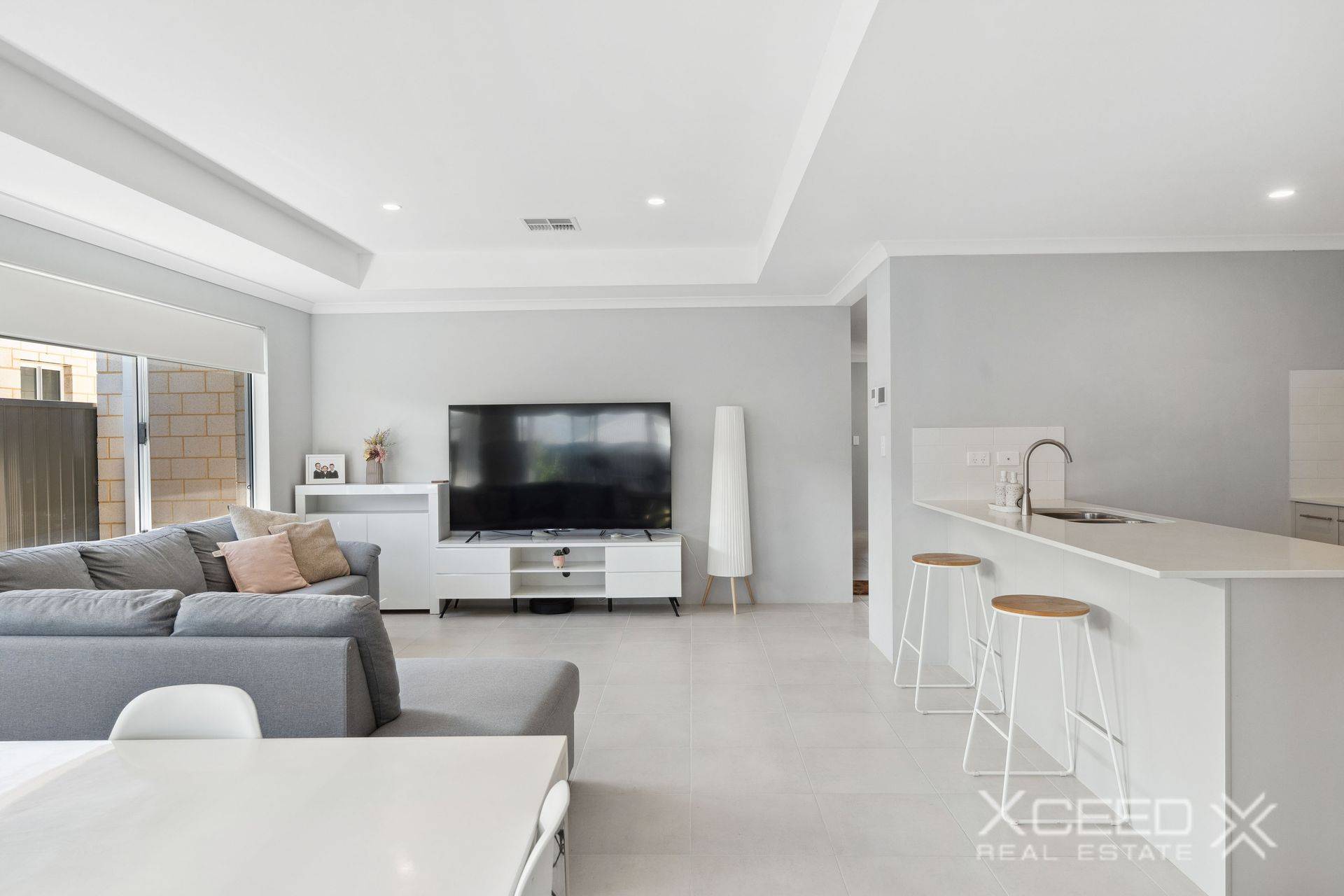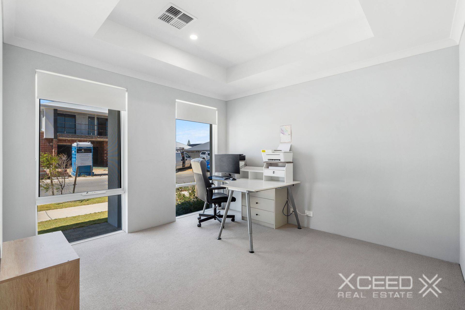 A separate carpeted front lounge room welcomes you inside with its striking recessed ceiling and can be anything you want, or need, it to be – from a theatre room to a home office or even a play zone for the kids.