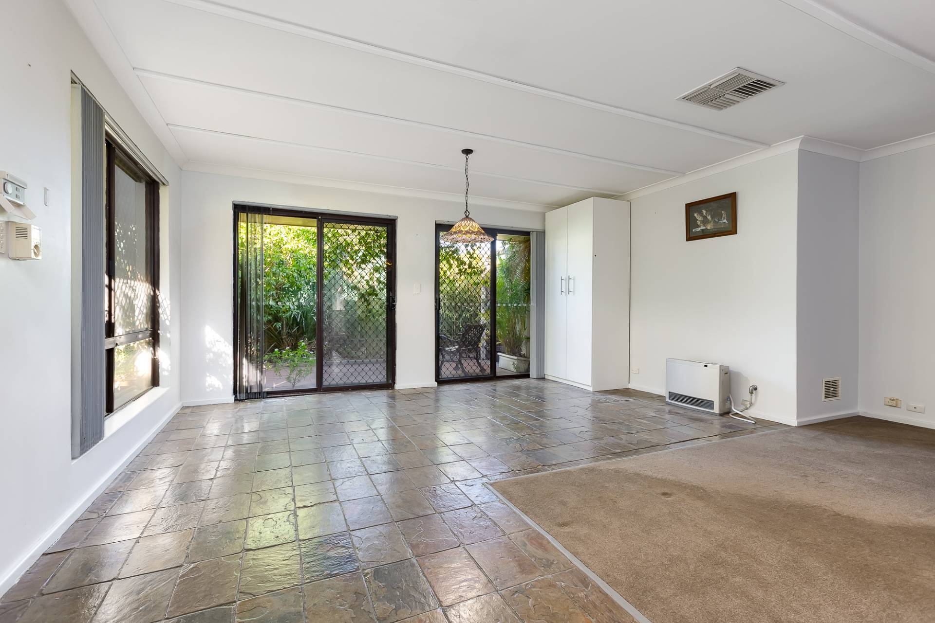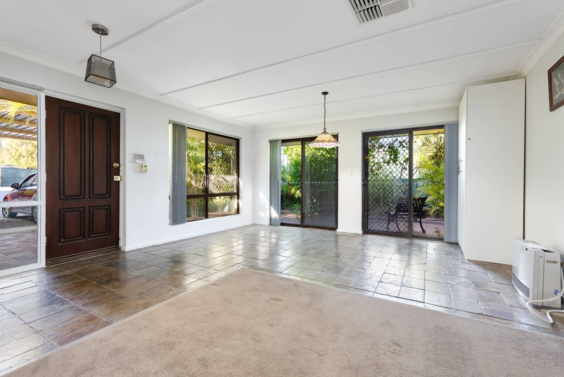 The whole family will appreciate the massive yard space, perfect for pets to roam freely. The property is secure and private, with extra-high fences, ensuring it's Beagle and Rottweiler-proof. This peaceful haven is conveniently located near schools, shops, doctors, and a bus stop right at your doorstep.