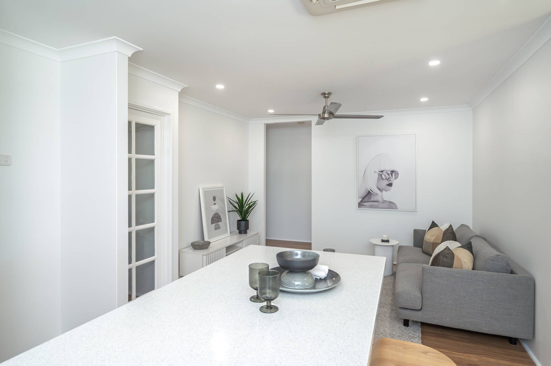As you enter, you'll be greeted by a light-filled living area, providing the perfect space to unwind or watch your favourite TV shows. The thoughtfully designed layout flows seamlessly, ensuring every corner of this home feels inviting and functional. The modern kitchen is a true centrepiece, featuring sleek cabinetry and stainless-steel appliances. You'll appreciate the clever open-plan design that leads effortlessly from the dining area to the outdoor space.