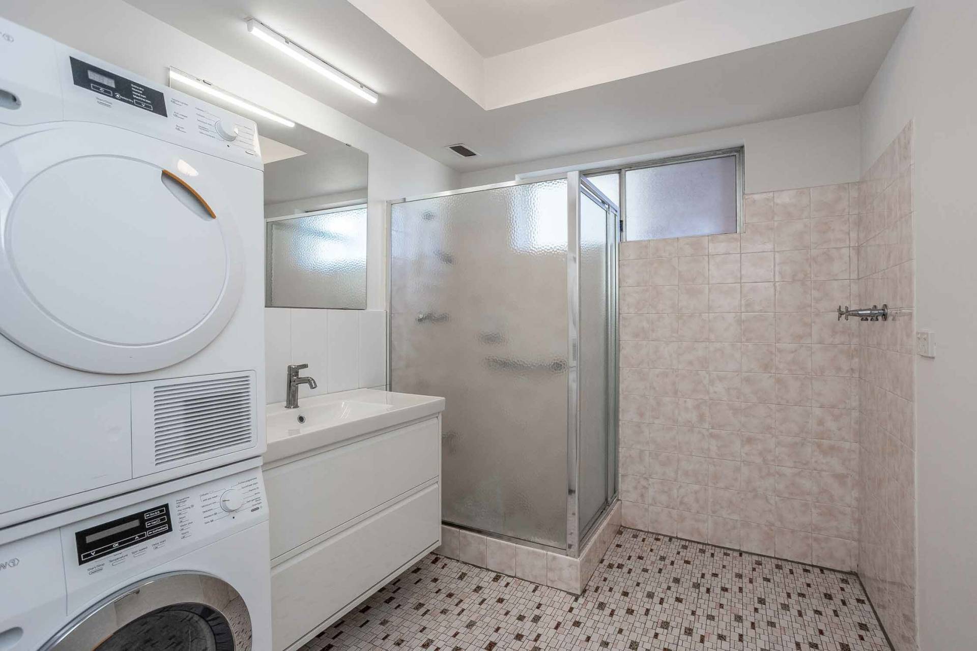 • 1 well-appointed bathroom with shower, new vanity and washing machine & dryer