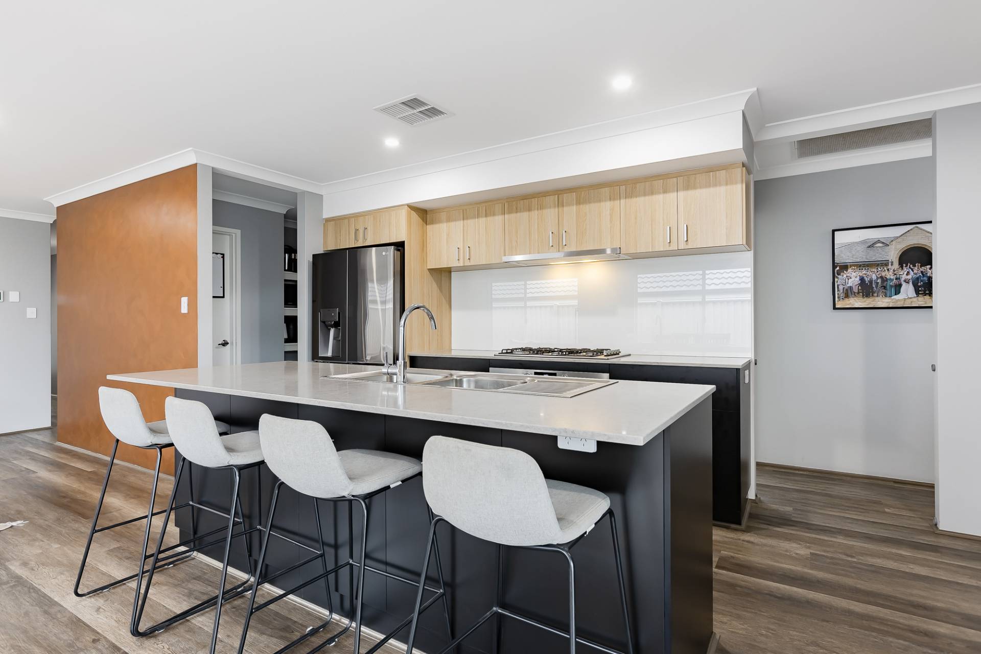 At the heart of the home is a stylish kitchen complete with stone benchtops, a large gas cooktop, gas oven, and a breakfast bar island bench for casual meals. The open-plan living area flows seamlessly to the outdoor alfresco space, making it perfect for entertaining or relaxing after a long day. A separate front lounge provides that extra living zone for growing families or those who love a bit of space to spread out.