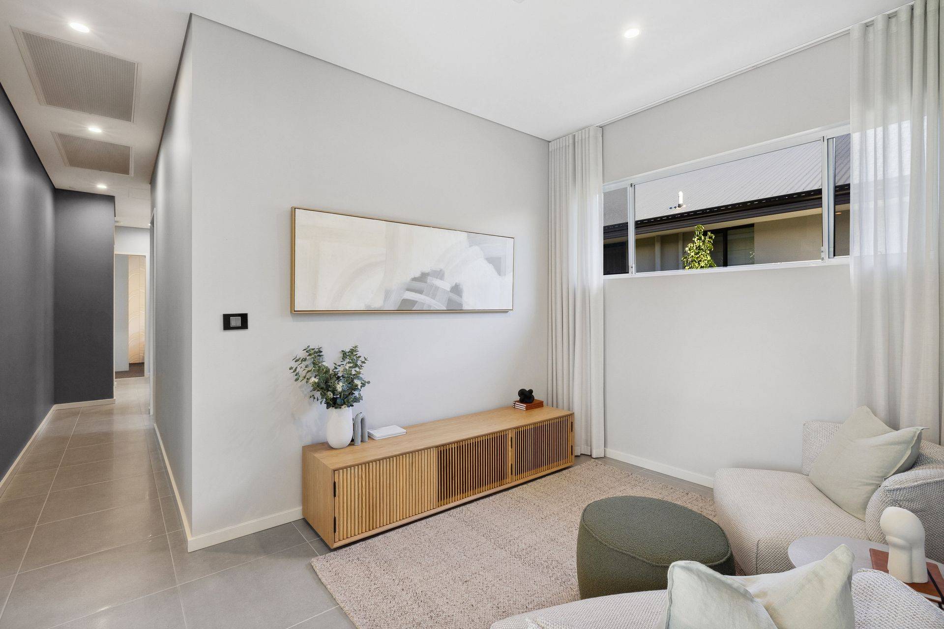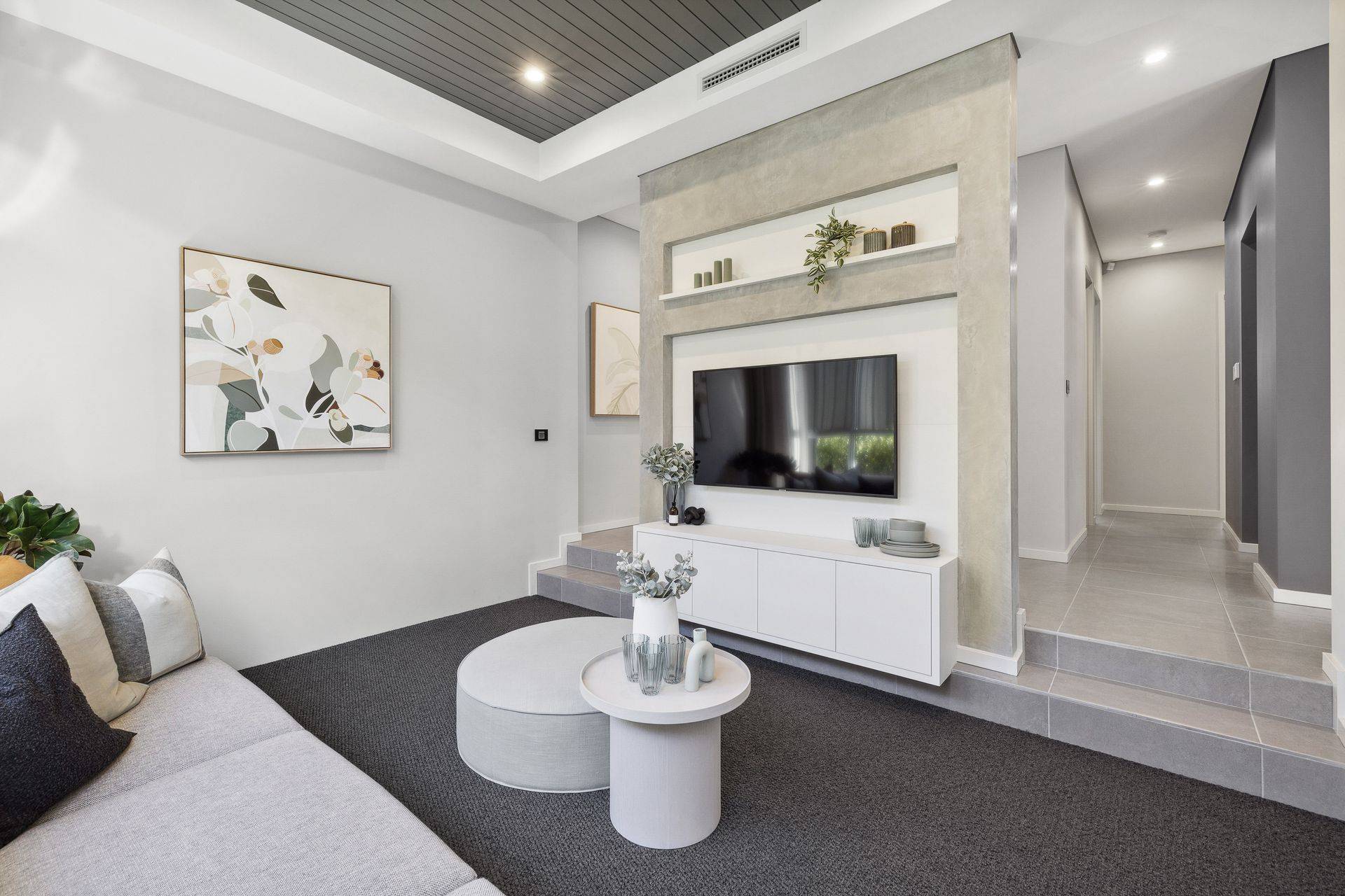The sunken theatre with 34c ceilings adds depth and drama, perfect for movie nights or private relaxation. Outdoors, the alfresco entertaining area is also finished with a raised 34c ceiling, creating a seamless indoor-outdoor lifestyle—ideal for weekend barbecues or evening drinks by the coast.